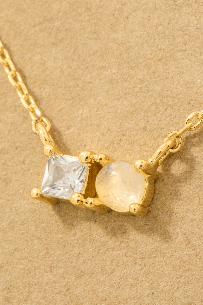- This trending necklace showcases a unique dainty moonstone charm necklace style. Unveil a new dimension of sophistication as this trending necklace effortlessly enhances the elegance of your ensemble.