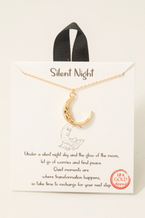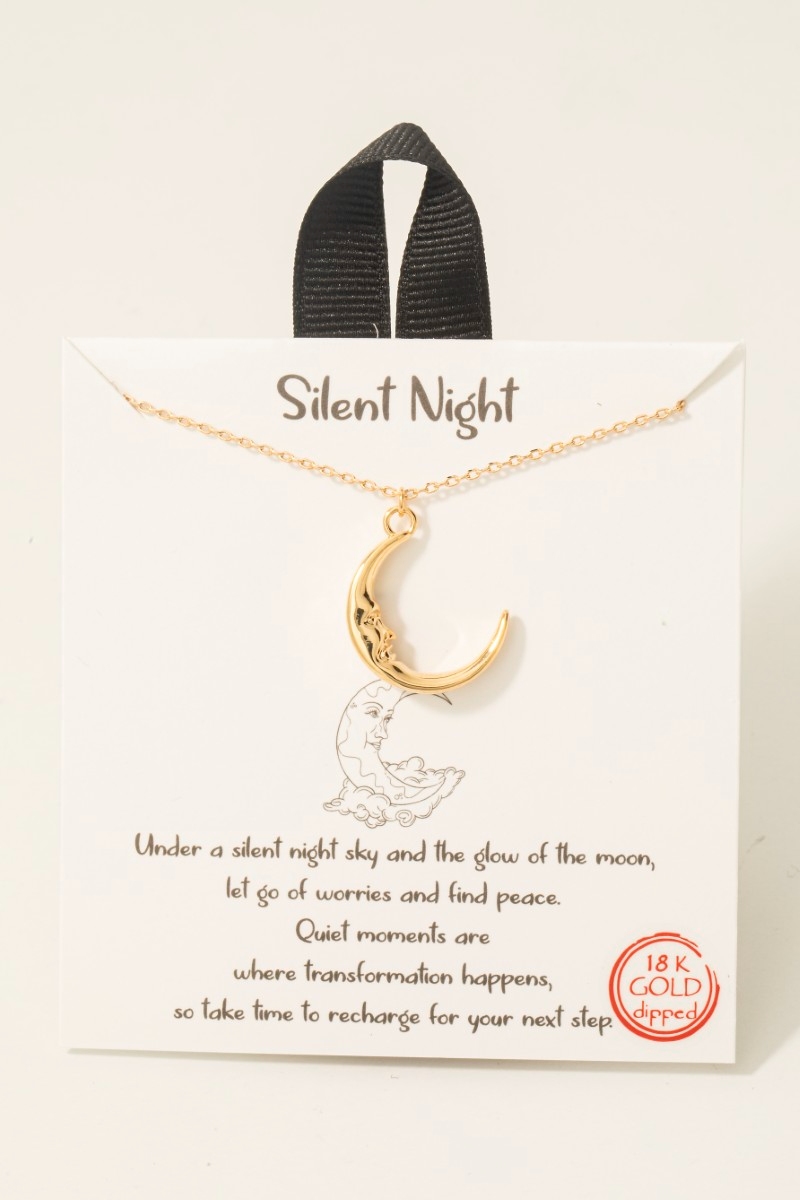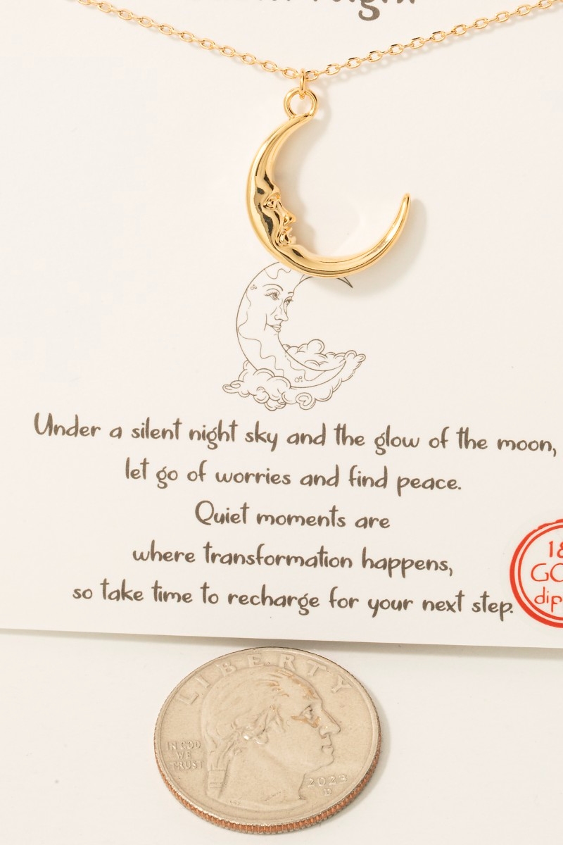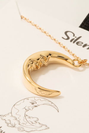 • This necklace showcases a timeless gold dipped moon face pendant style. Revel in the intricate design that effortlessly distinguishes this necklace, making it a statement piece.