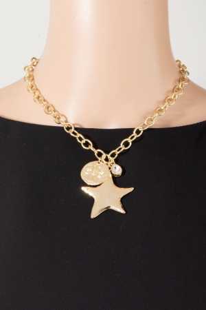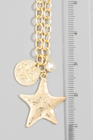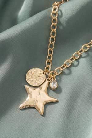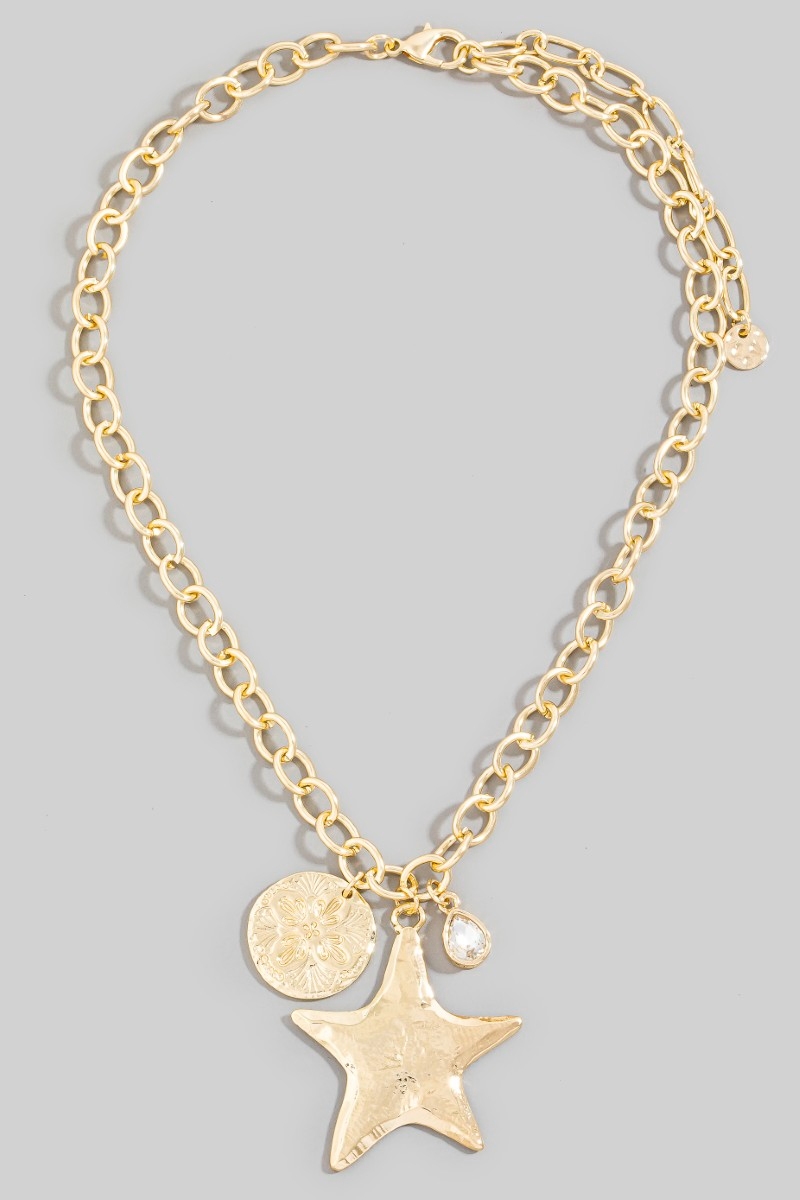 - This chain necklace displays a vibrant star and coin pendant oval style. Unveil a new dimension of sophistication as this chain necklace effortlessly enhances the elegance of your ensemble.