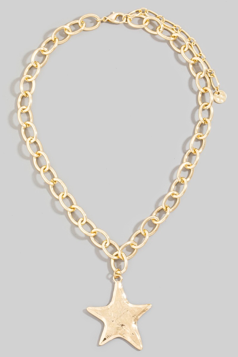 • This chain necklace adds a modern star pendant oval style. Witness the perfect fusion of style and functionality as this chain necklace effortlessly complements your lifestyle.