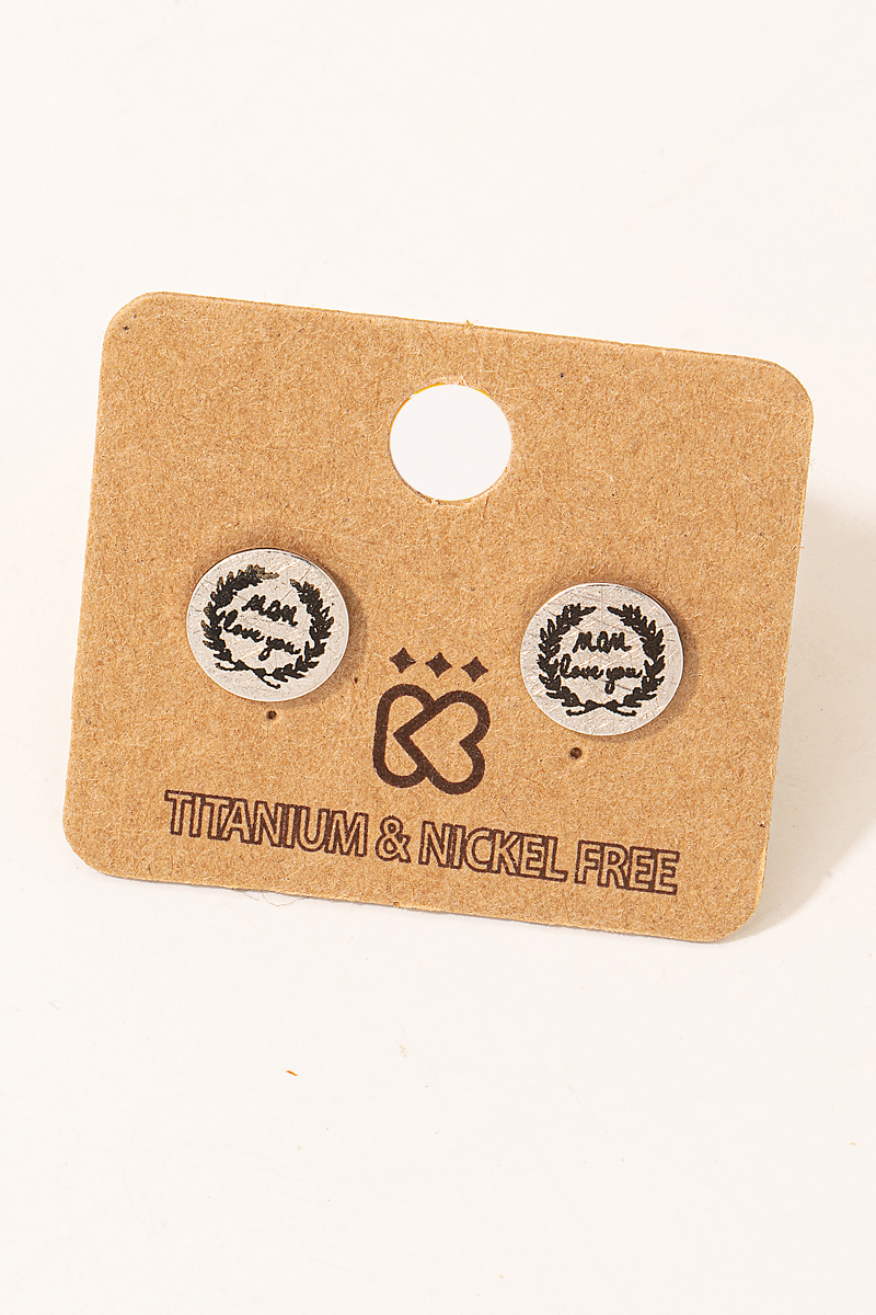 - This trending pair of earrings showcases a unique mom love you circle stud earrings style. Indulge in the allure of exquisite craftsmanship as this trending pair of earrings effortlessly adds a touch of luxury to your attire.