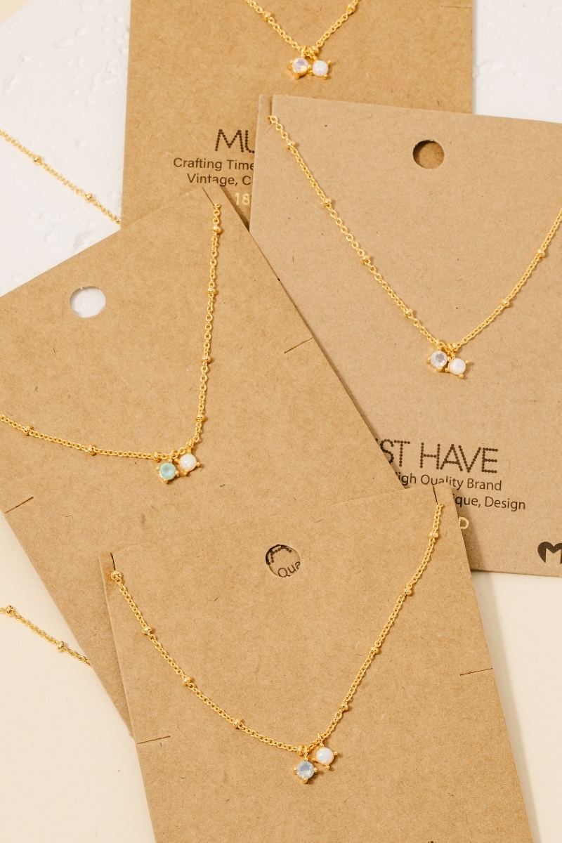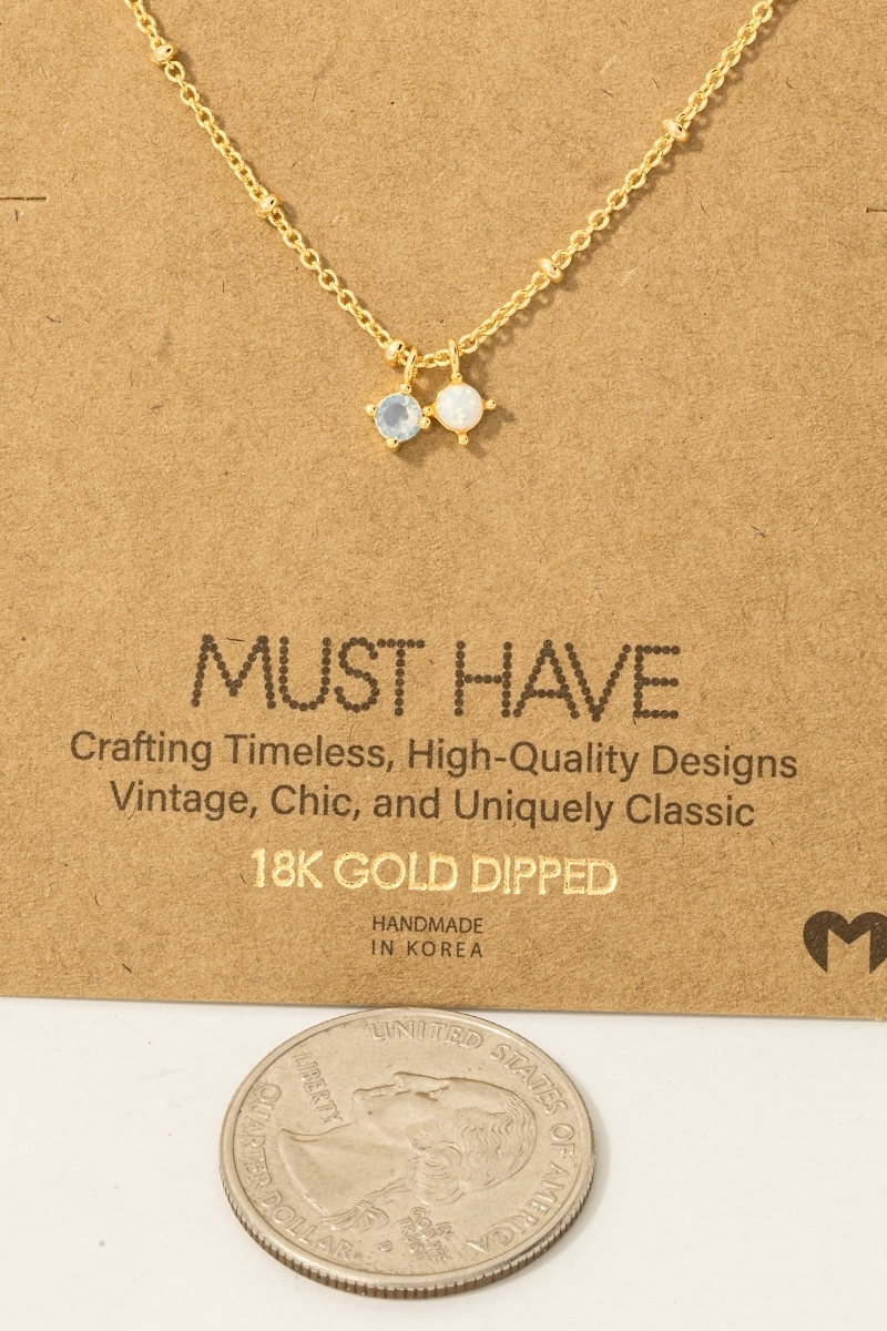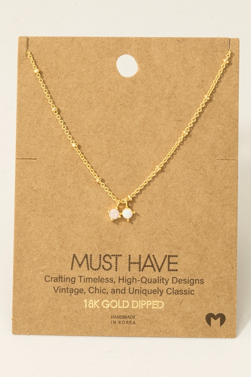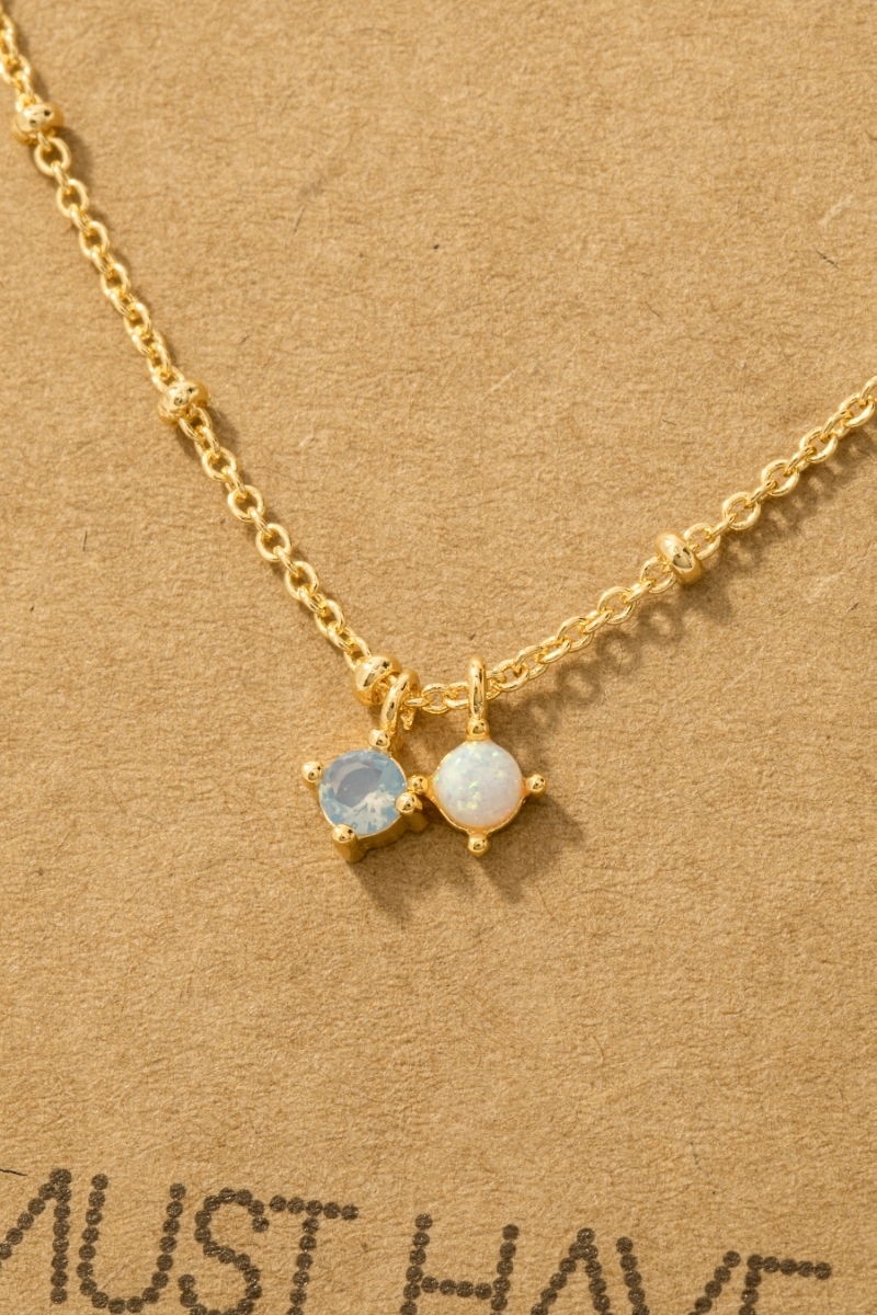 • This trending necklace displays a vibrant gold dipped cubic zirconia and opal charms chain necklace style. Delight in the nuanced details that make this trending necklace a testament to fine design and impeccable taste.