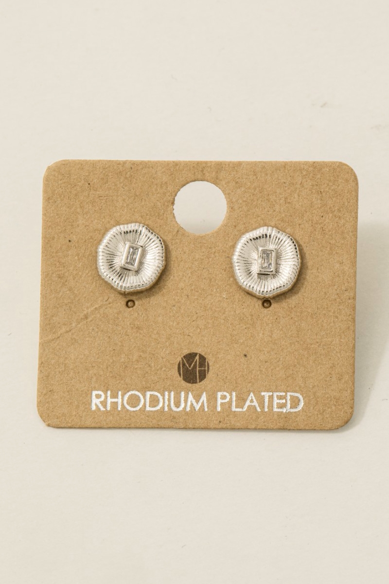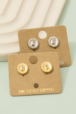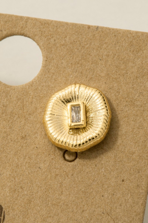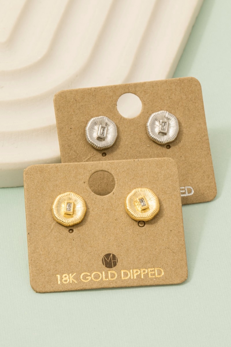 - This trending pair of earrings showcases a unique gold dipped circle baguette rhinestone stud earrings style. Revel in the intricate design that effortlessly distinguishes this trending pair of earrings, making it a statement piece.