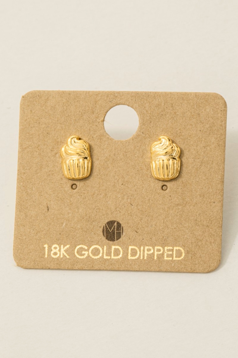 • This trending pair of earrings displays a fashionable gold dipped cupcake stud earrings style. Unveil modern elegance with this subtly intricate trending pair of earrings.