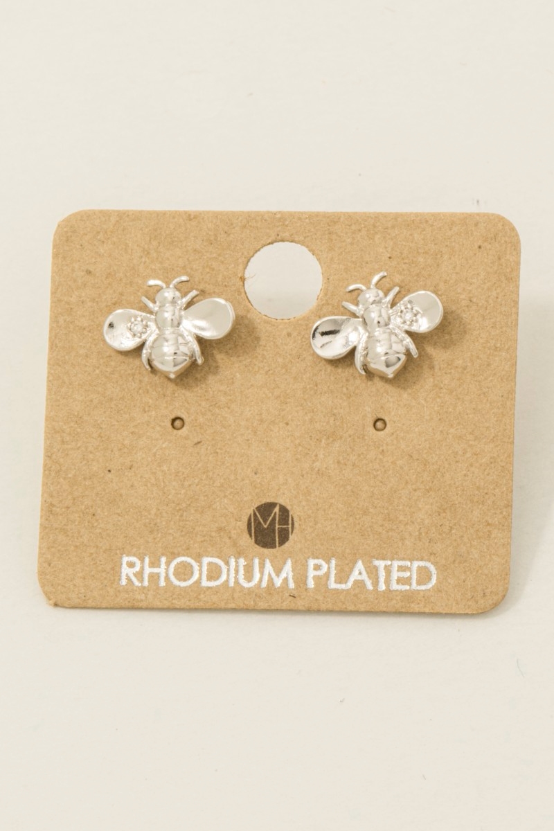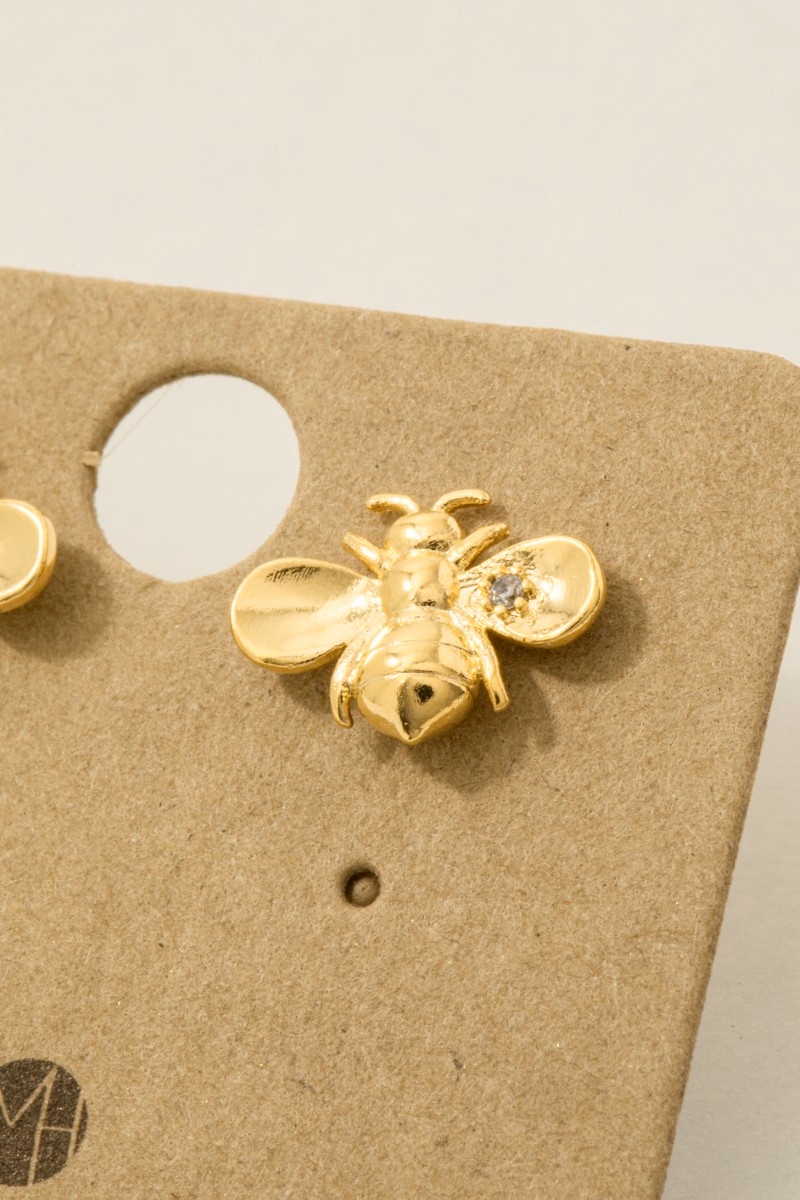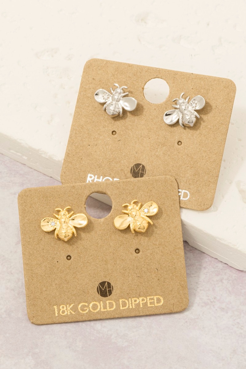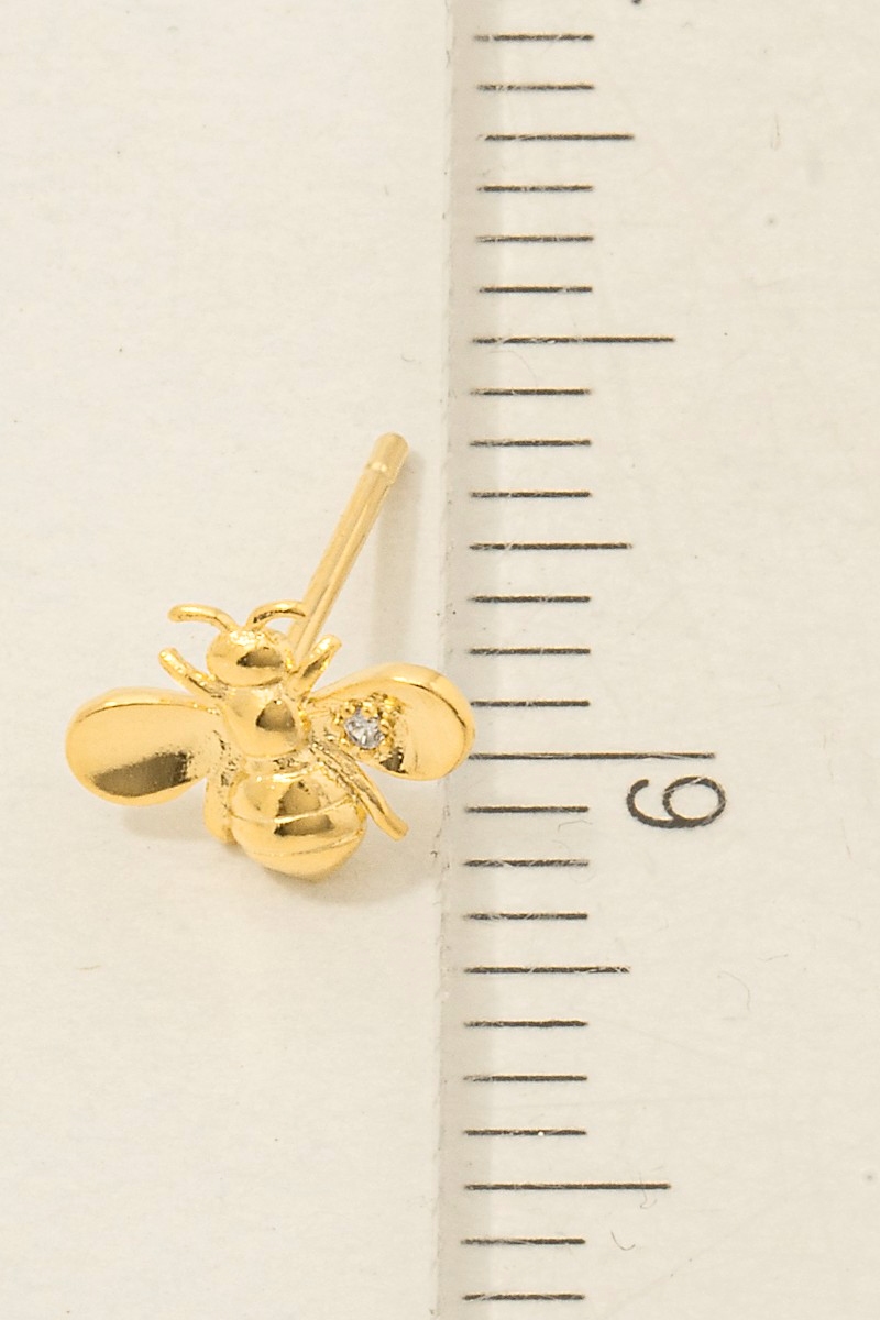 - This pair of stud earrings displays a vibrant gold dipped cubic zirconia bumble bee style. Redefine your look effortlessly with this standout, on-trend piece.