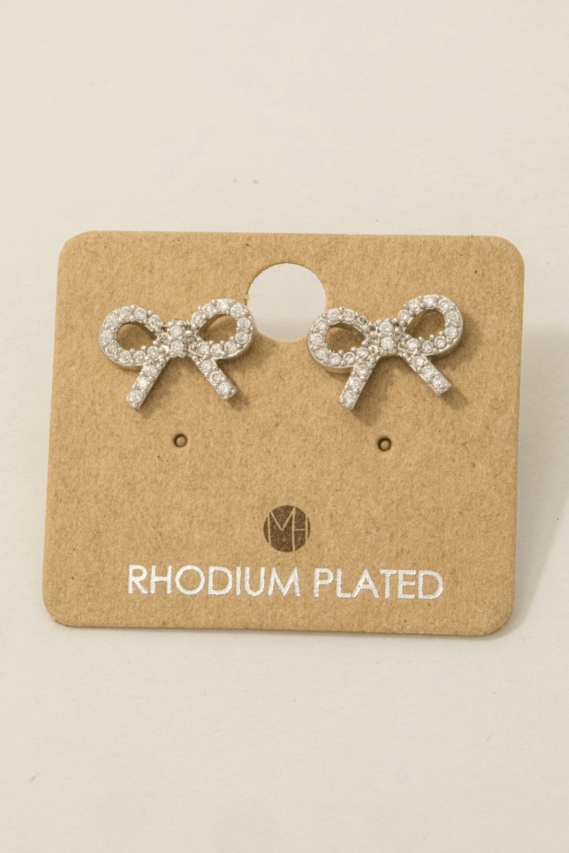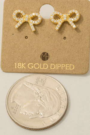 - This trending pair of earrings showcases a timeless gold dipped cubic zirconia pave ribbon bow stud earrings style. Delight in the intricate details that make this trending pair of earrings an essential element in expressing your fashion identity.
