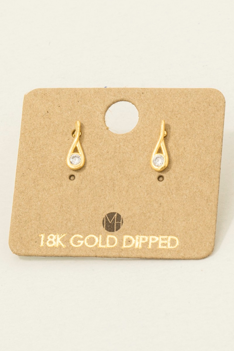 Gold Dipped And Cz Double Tear Stud Earrings