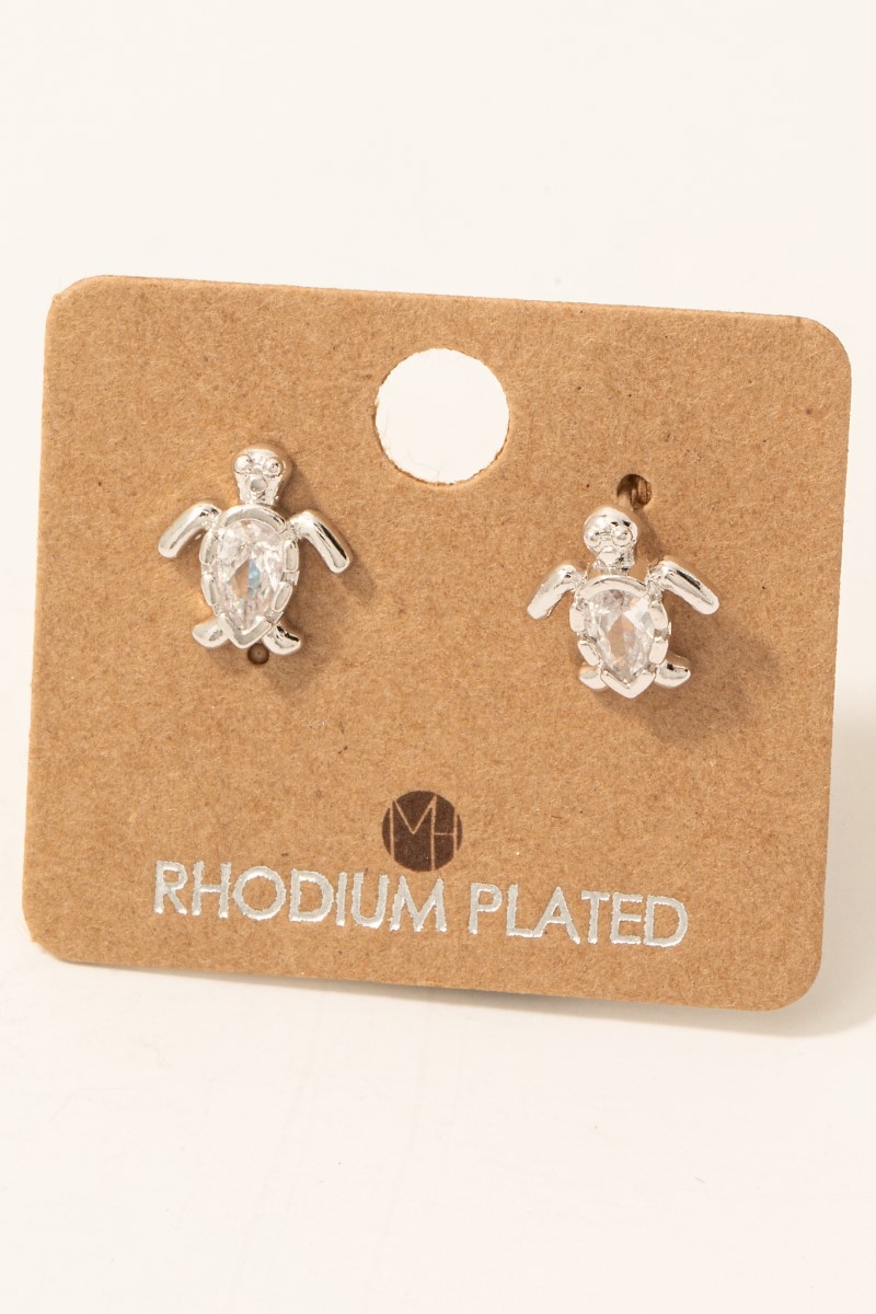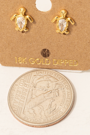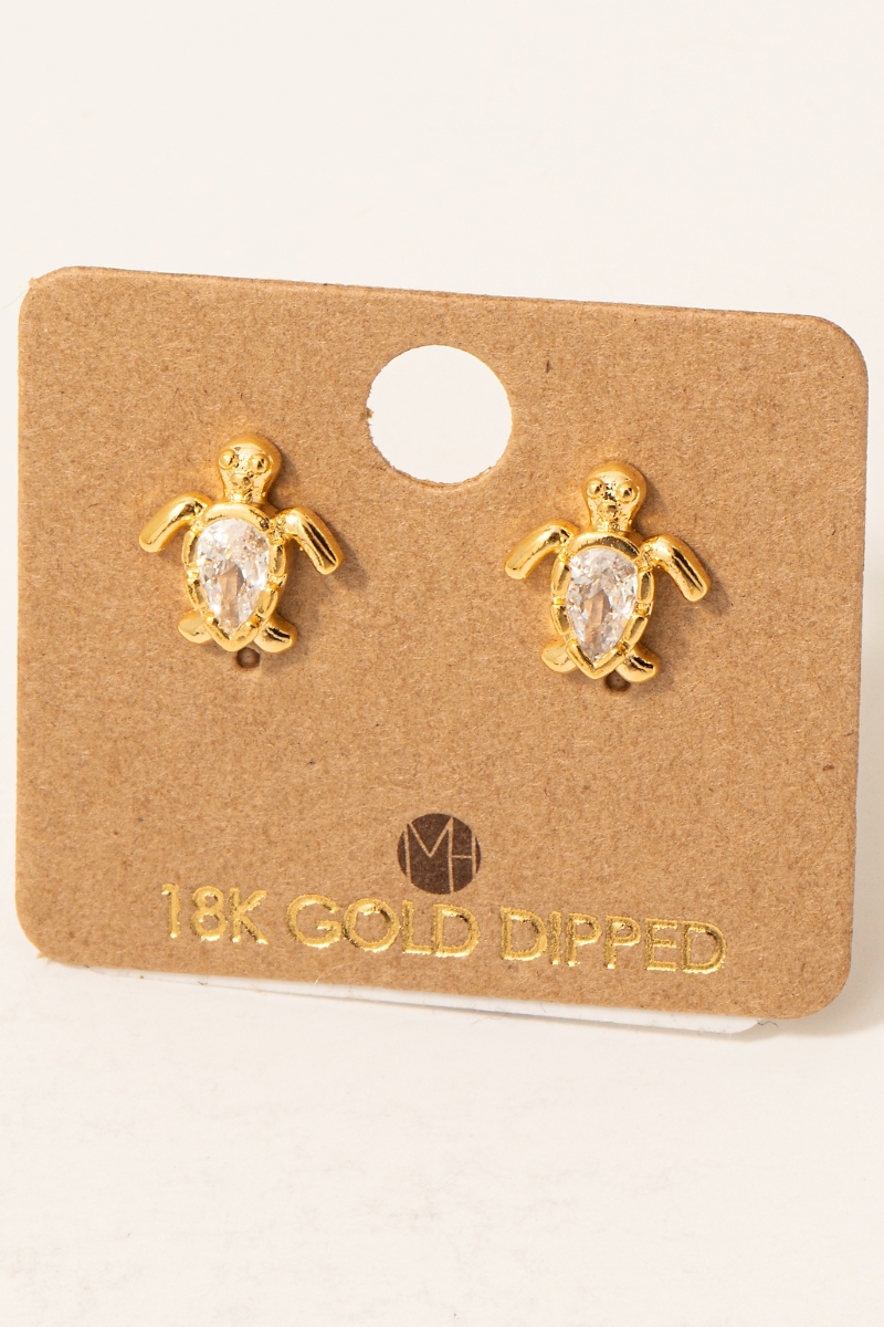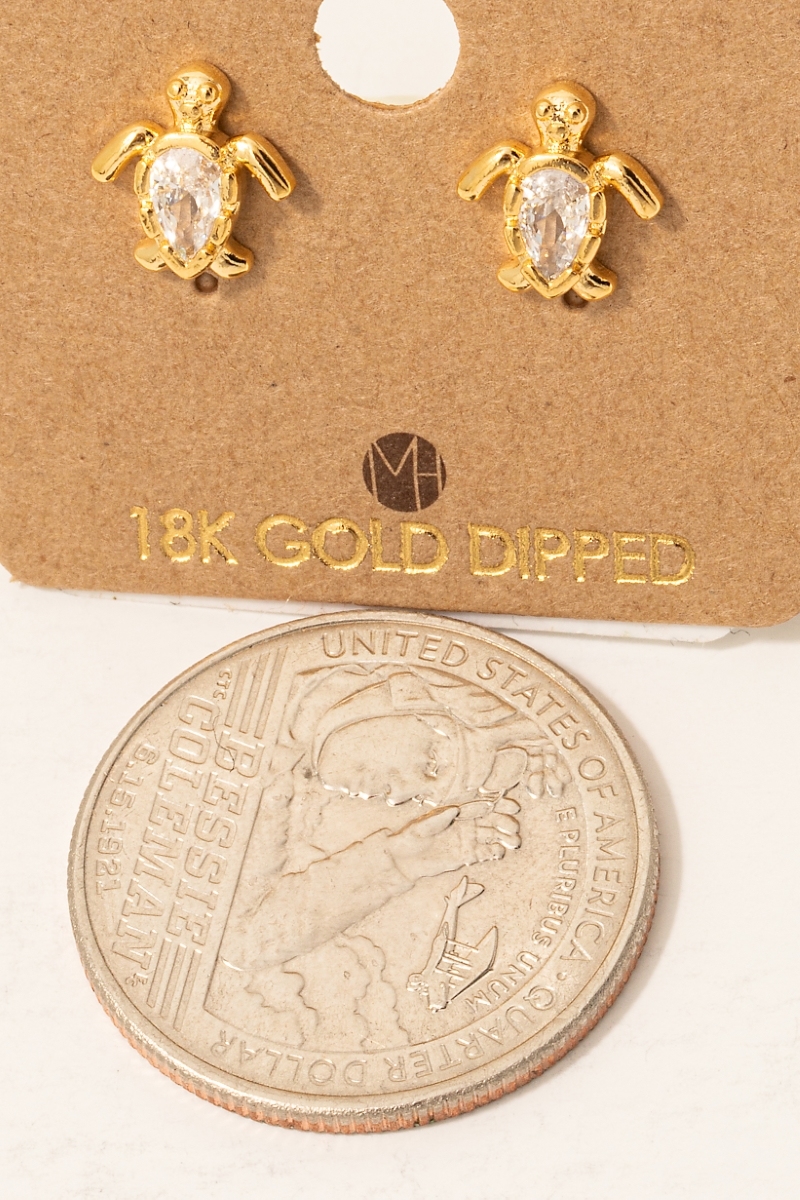 - This pair of stud earrings brings a unique gold dipped cubic zirconia turtle style. Indulge in the allure of exquisite craftsmanship as this pair of stud earrings effortlessly adds a touch of luxury to your attire.
