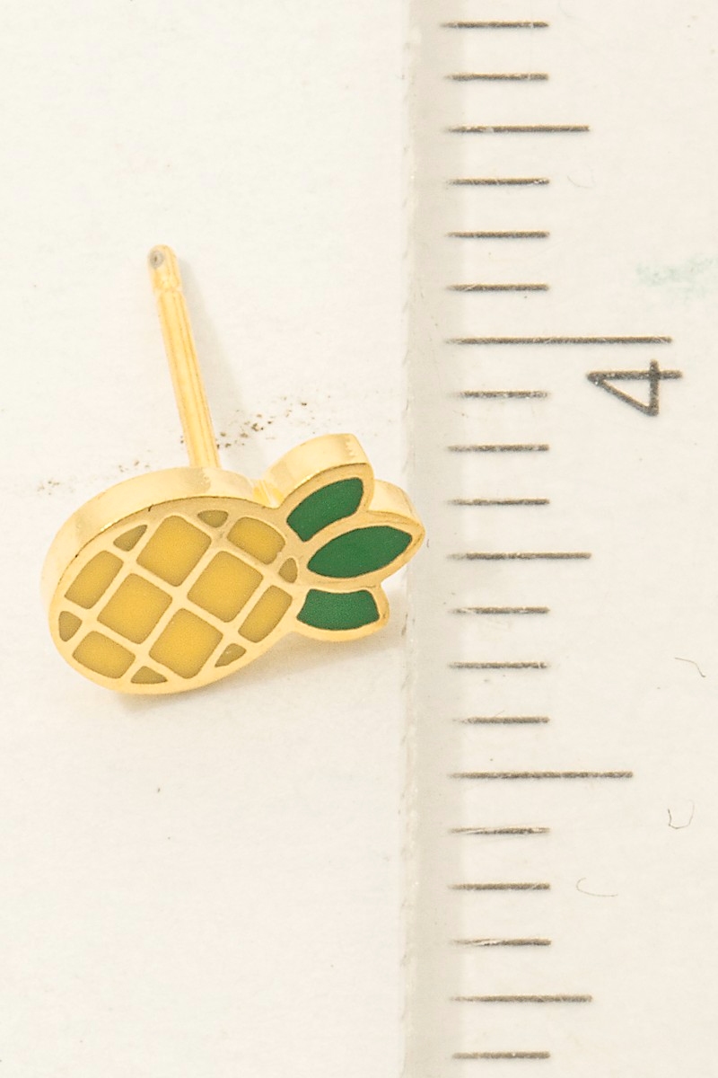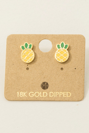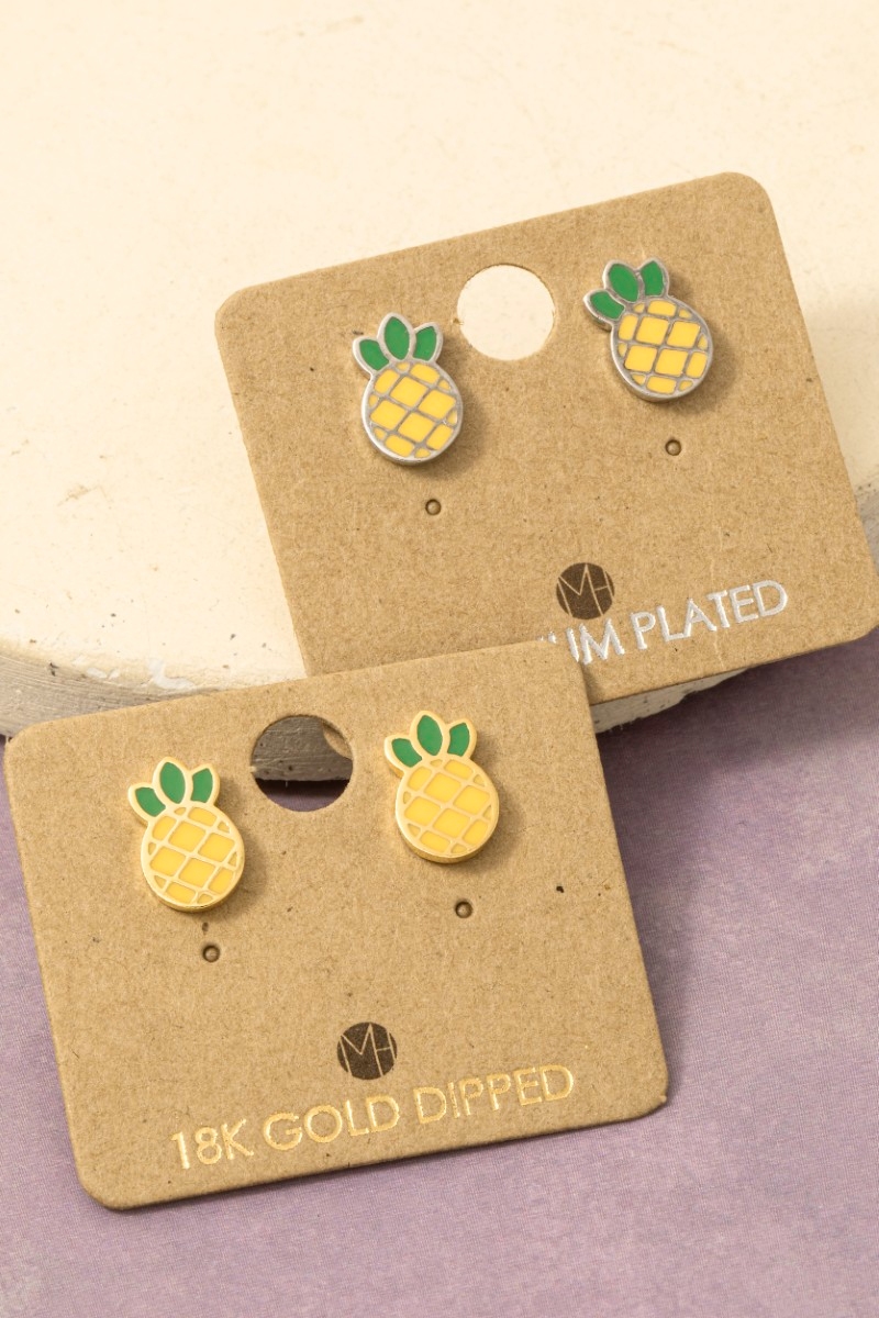 • This trending pair of earrings brings a stunning gold dipped epoxy pineapple fruit stud earrings style. Revel in the intricate design that effortlessly distinguishes this trending pair of earrings, making it a statement piece.