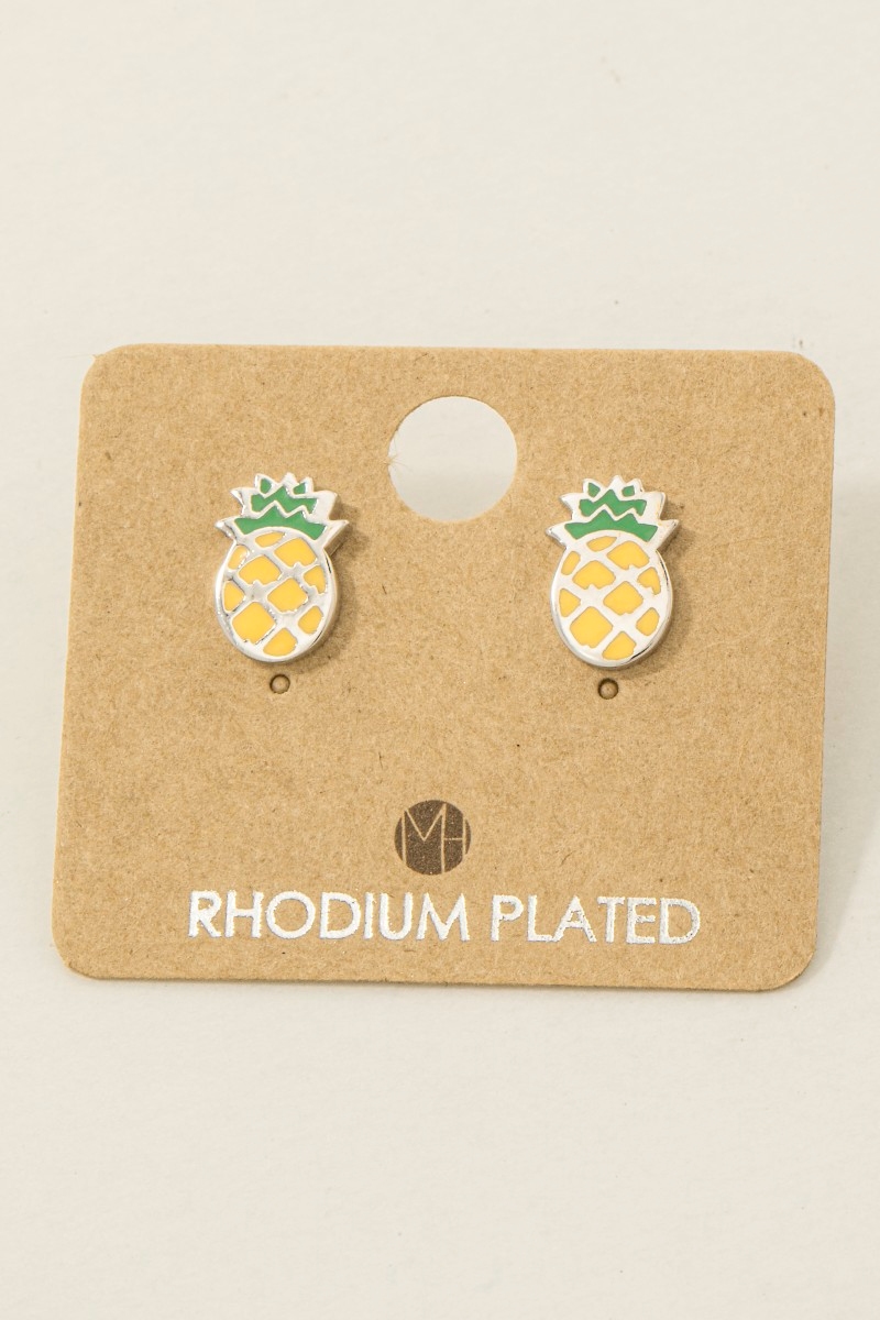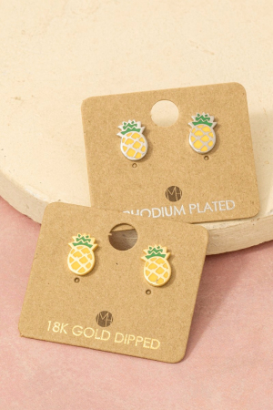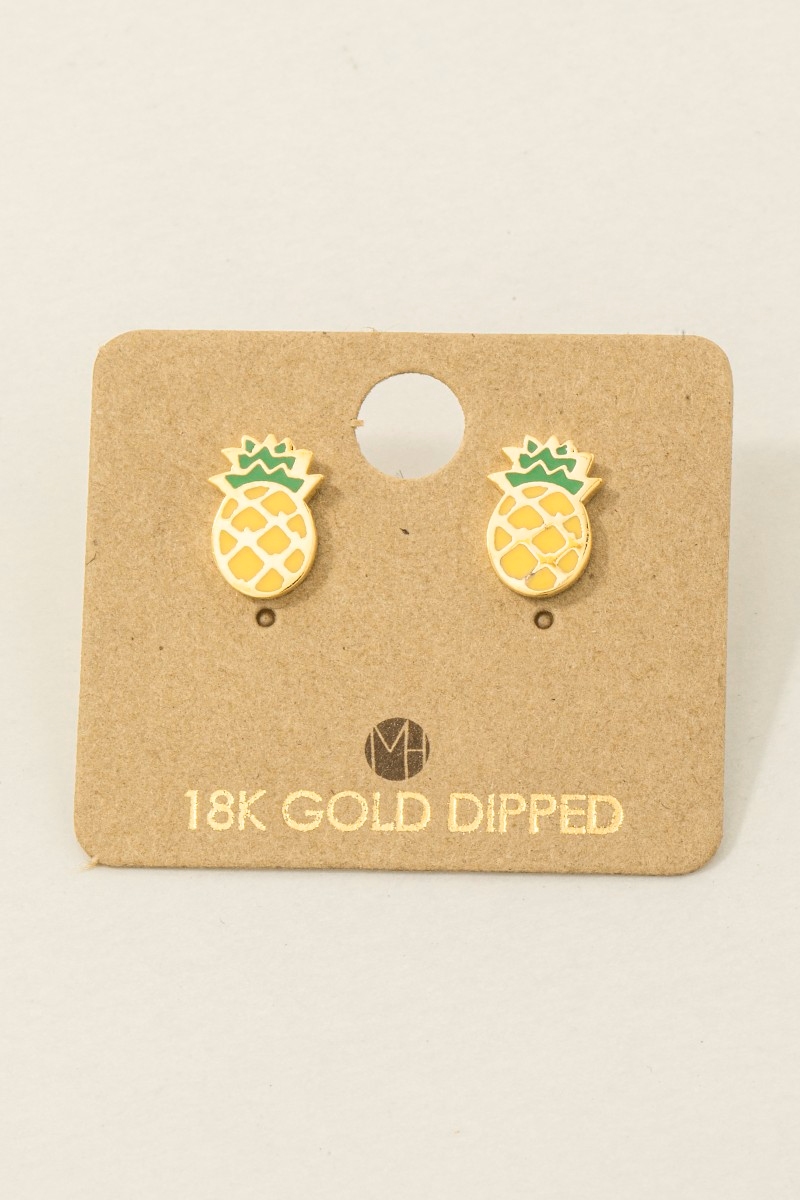 - This pair of stud earrings brings a unique gold dipped epoxy pineapple style. Redefine your look effortlessly with this standout, on-trend piece.