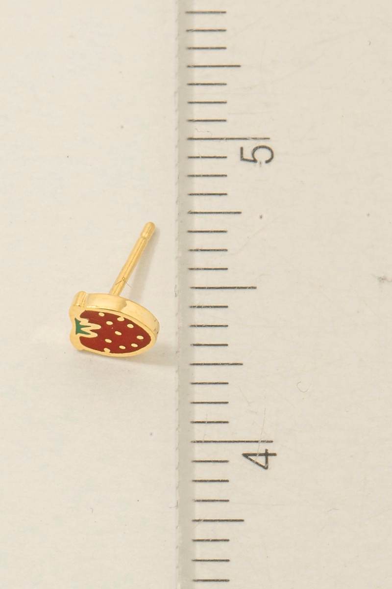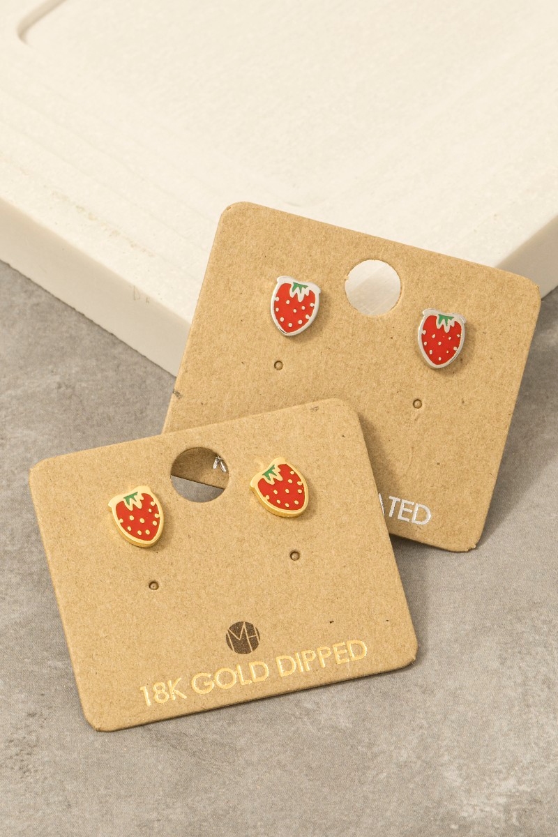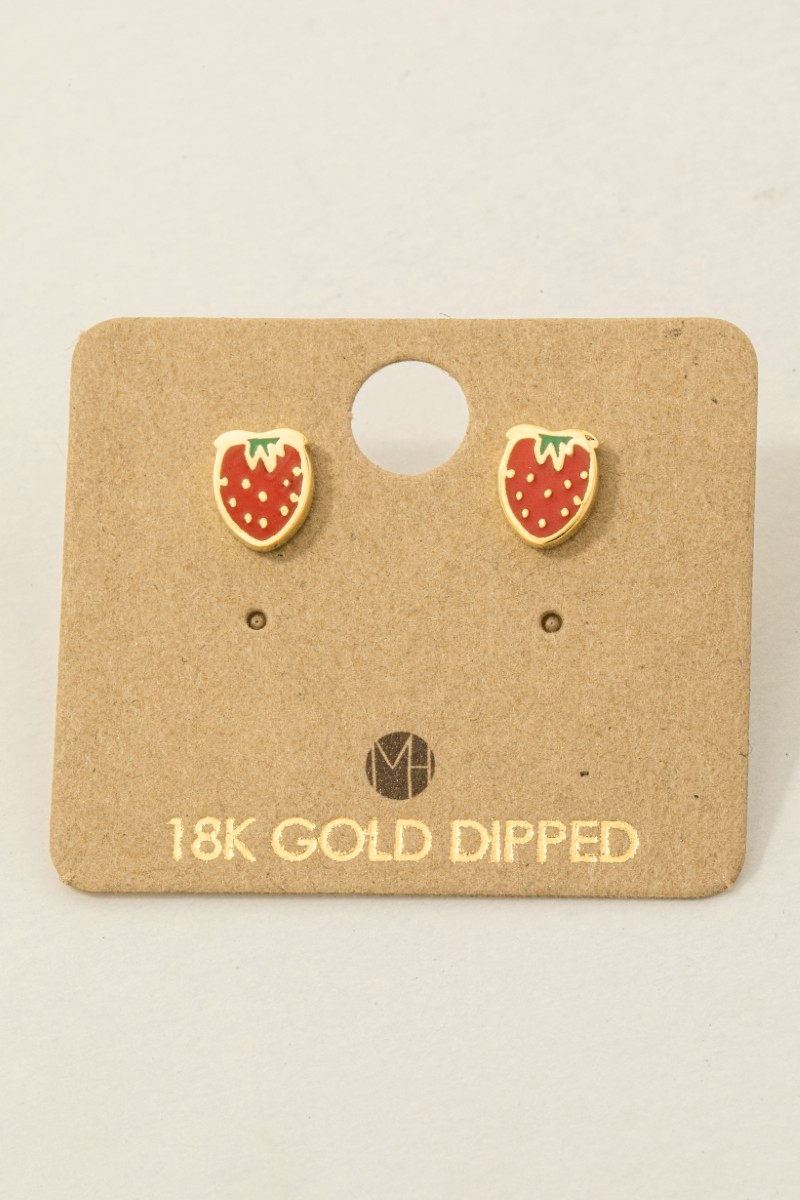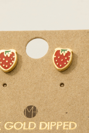 - This pair of stud earrings introduces a unique gold dipped epoxy strawberry style. Unveil a new dimension of sophistication as this pair of stud earrings effortlessly enhances the elegance of your ensemble.