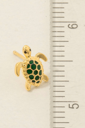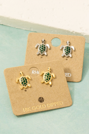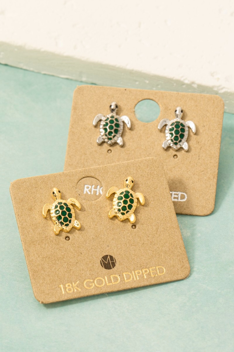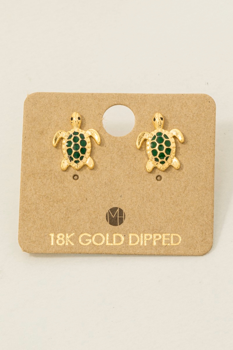 - This pair of stud earrings showcases a unique gold dipped epoxy turtle style. Experience the joy of accessorizing with this piece that effortlessly combines versatility and charm.