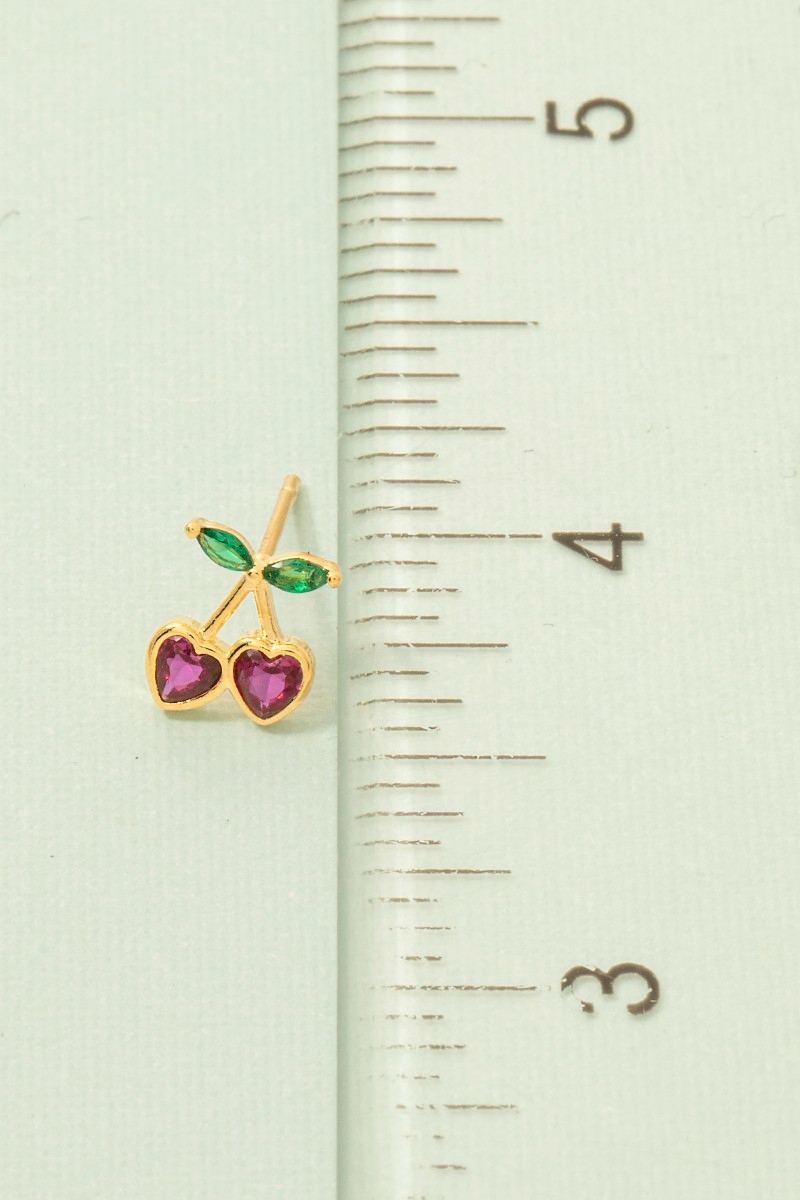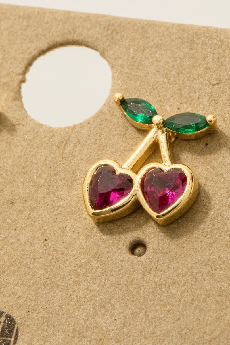 • This trending pair of earrings features a fashionable gold dipped mini cherry heart stud earrings style. Experience the joy of accessorizing with this piece that effortlessly combines versatility and charm.
