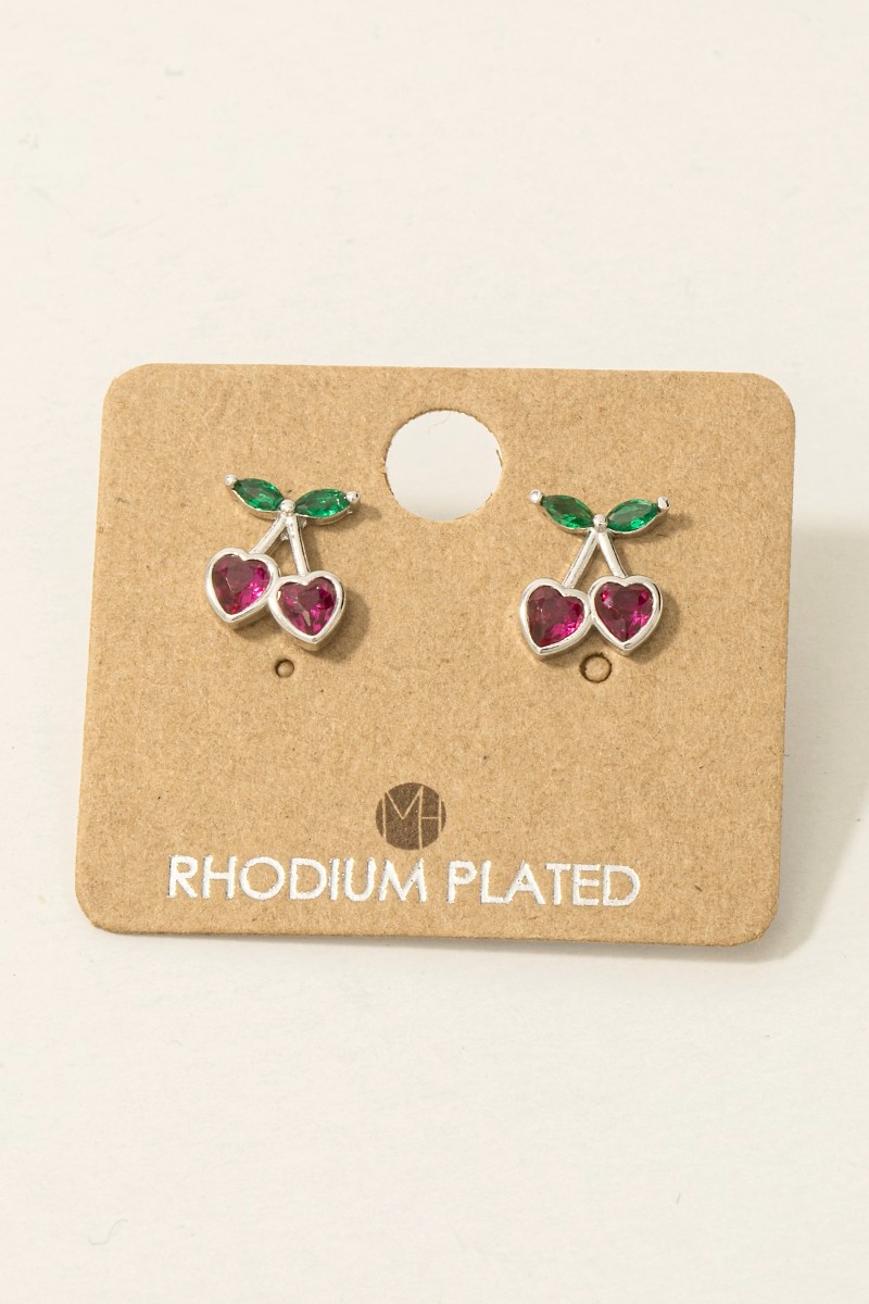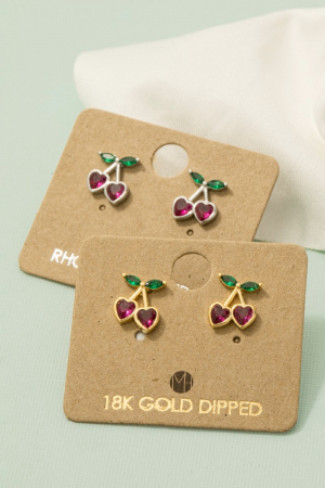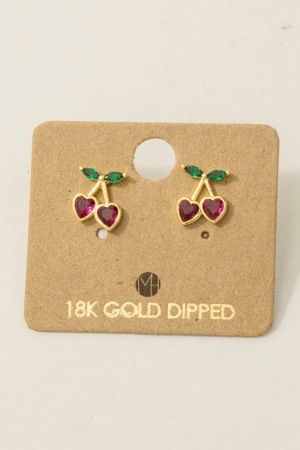 Gold Dipped Cz Pave Cherry Stud Earrings