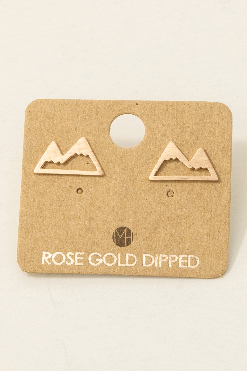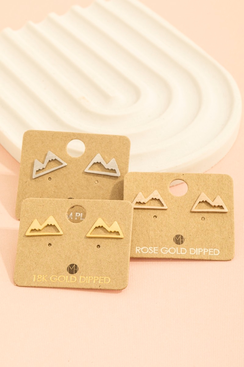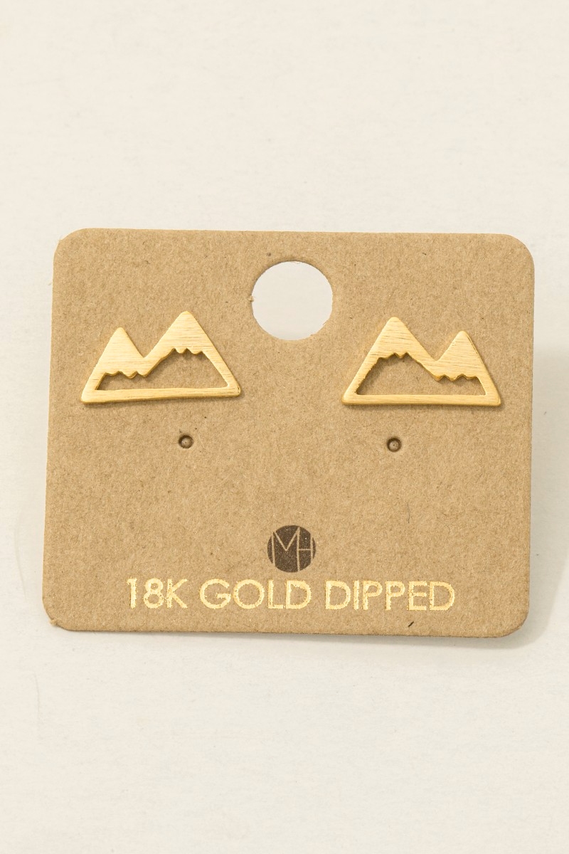 - This trending pair of earrings displays a vibrant gold dipped mini mountain cutout stud earrings style. Celebrate individual style with this versatile, eye-catching addition.
