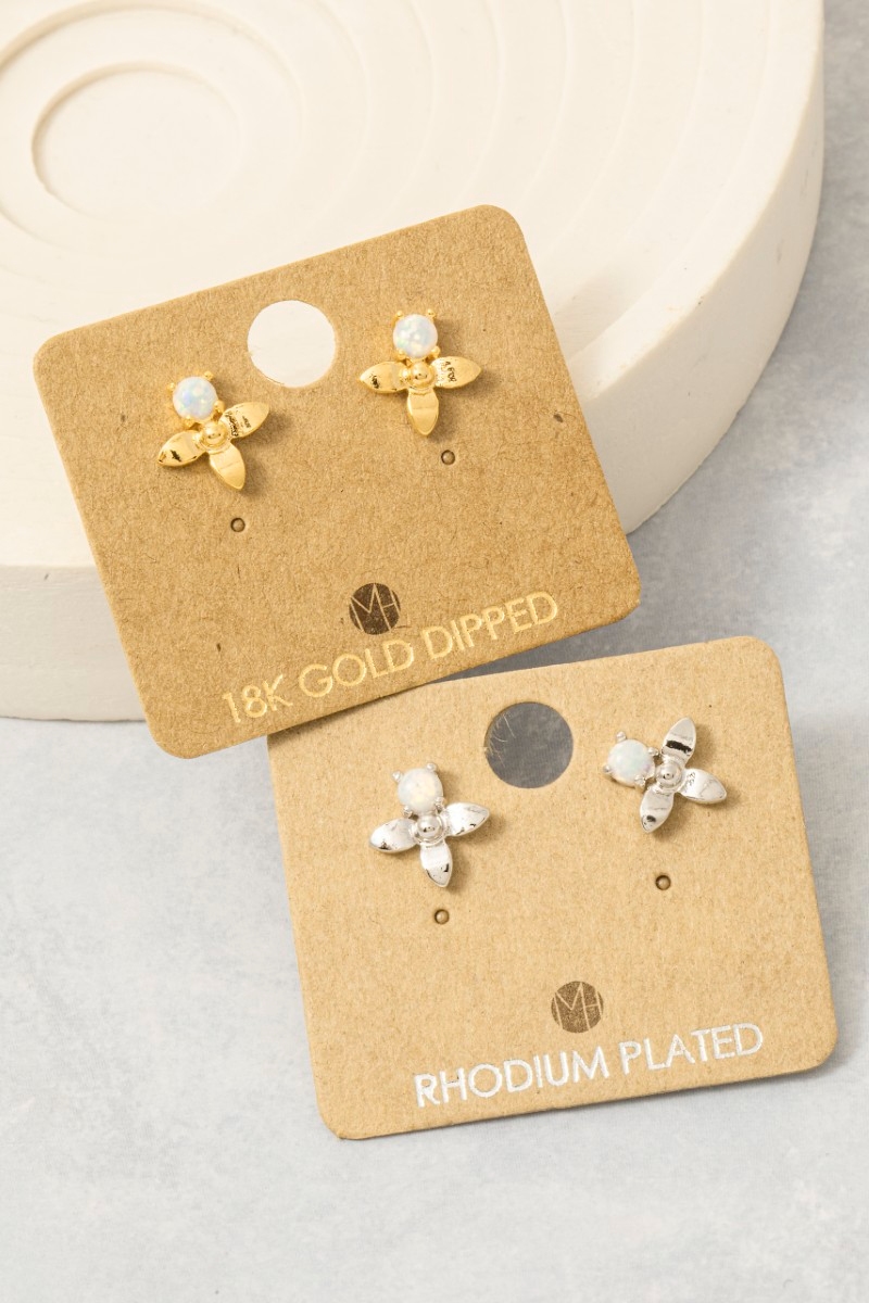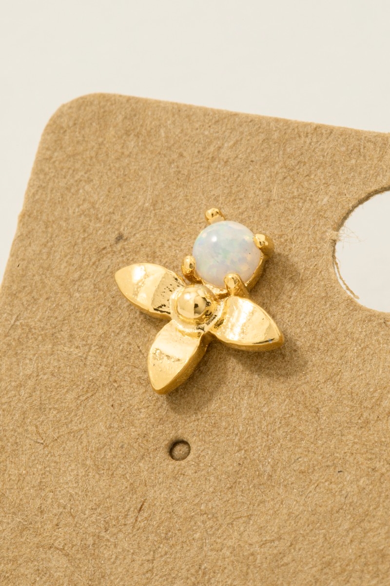 • This trending pair of earrings introduces a unique gold dipped mini opal flower stud earrings style. Experience refined sophistication with this understated yet stylish piece.