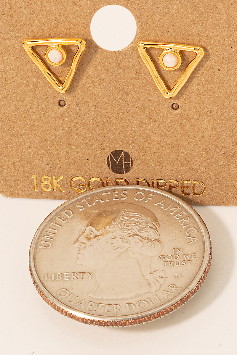 - This pair of stud earrings brings a luxurious gold dipped mini triangle and opal style. Celebrate the art of accessorizing with this piece that effortlessly encapsulates modern trends.