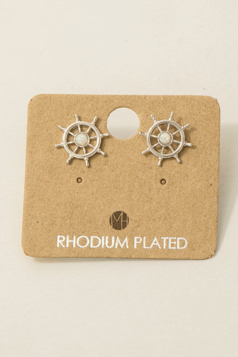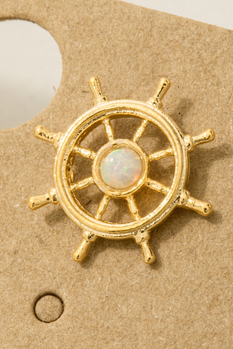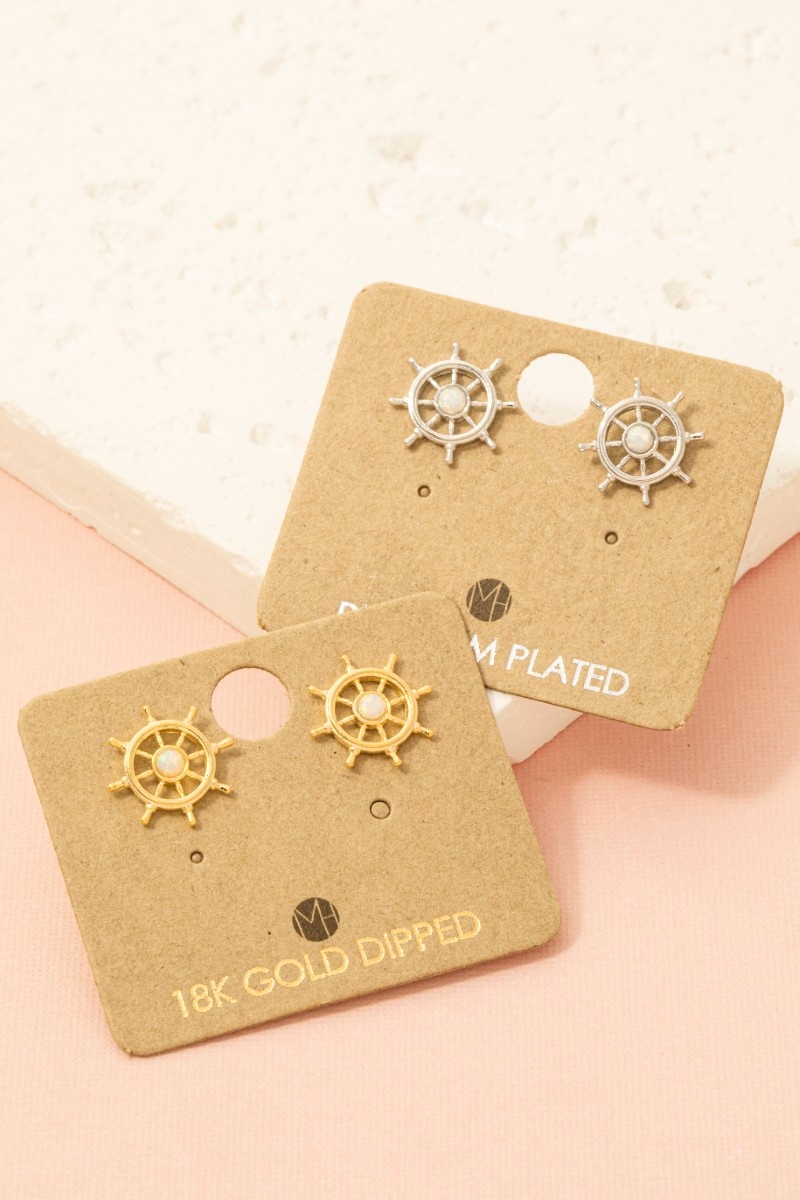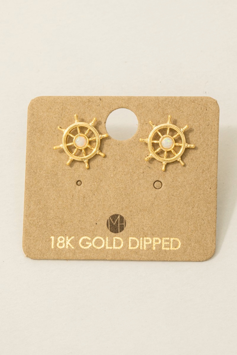 • This pair of stud earrings brings a luxurious gold dipped opal stud ship wheel style. Experience refined sophistication with this understated yet stylish piece.