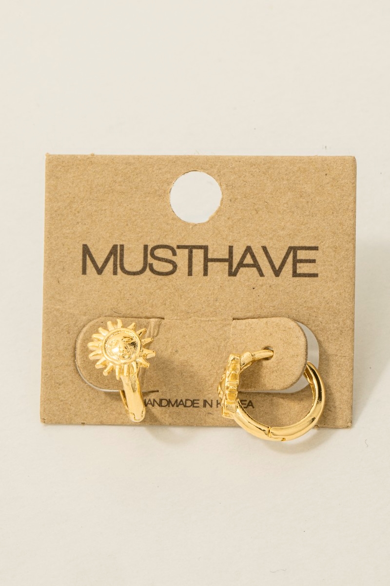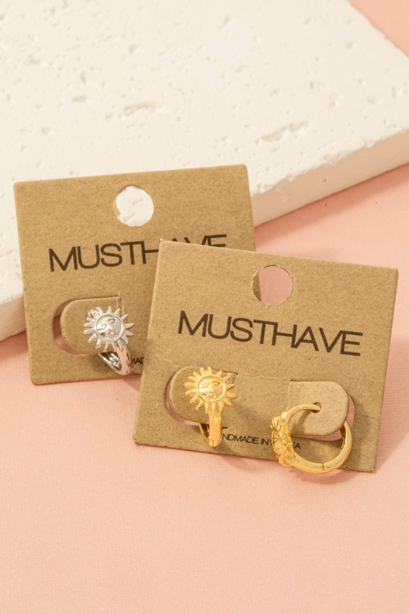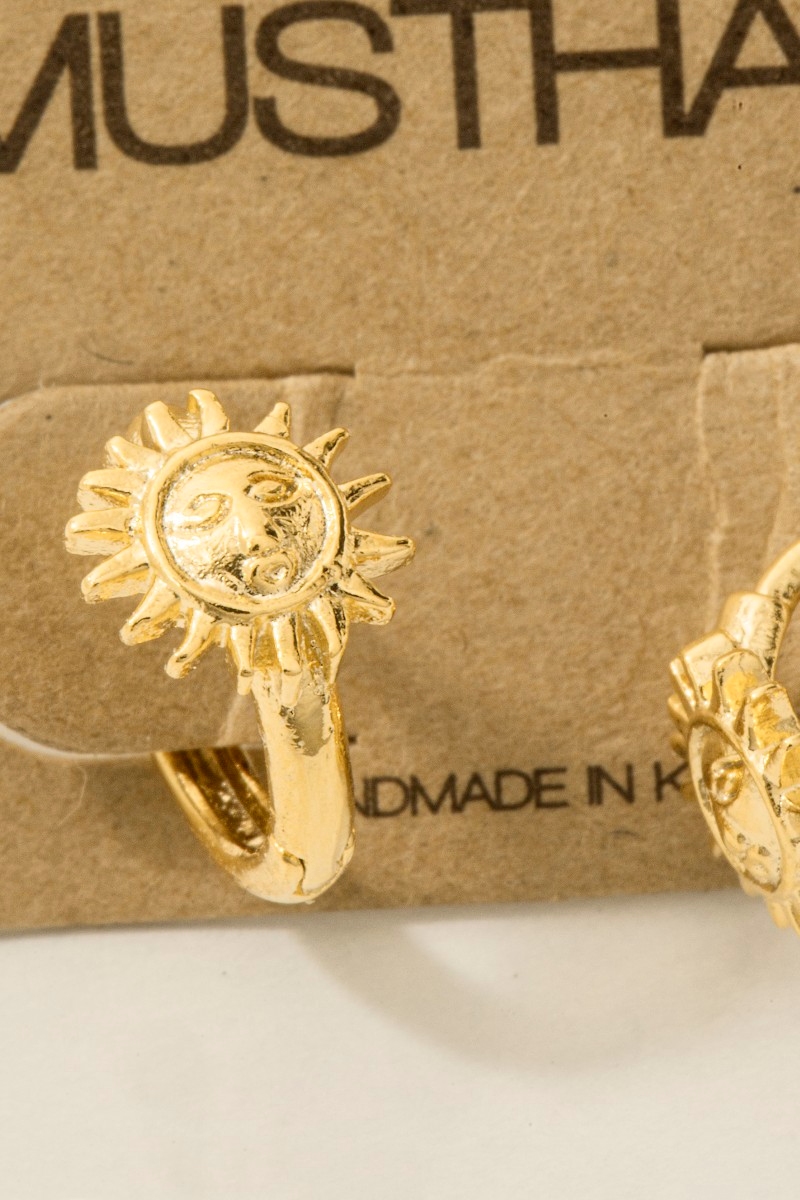- This trending pair of earrings brings a luxurious gold dipped sun face station hoop earrings style. Explore a blend of classic charm and contemporary flair.