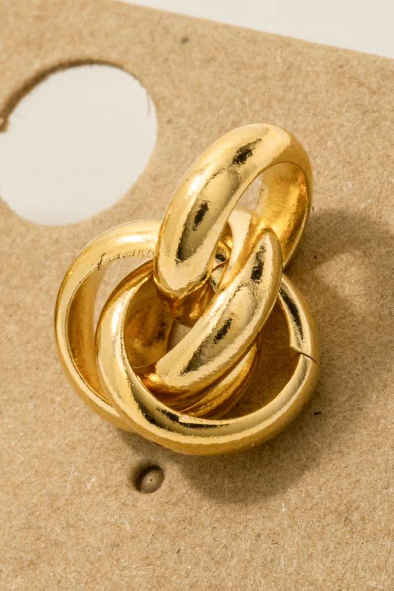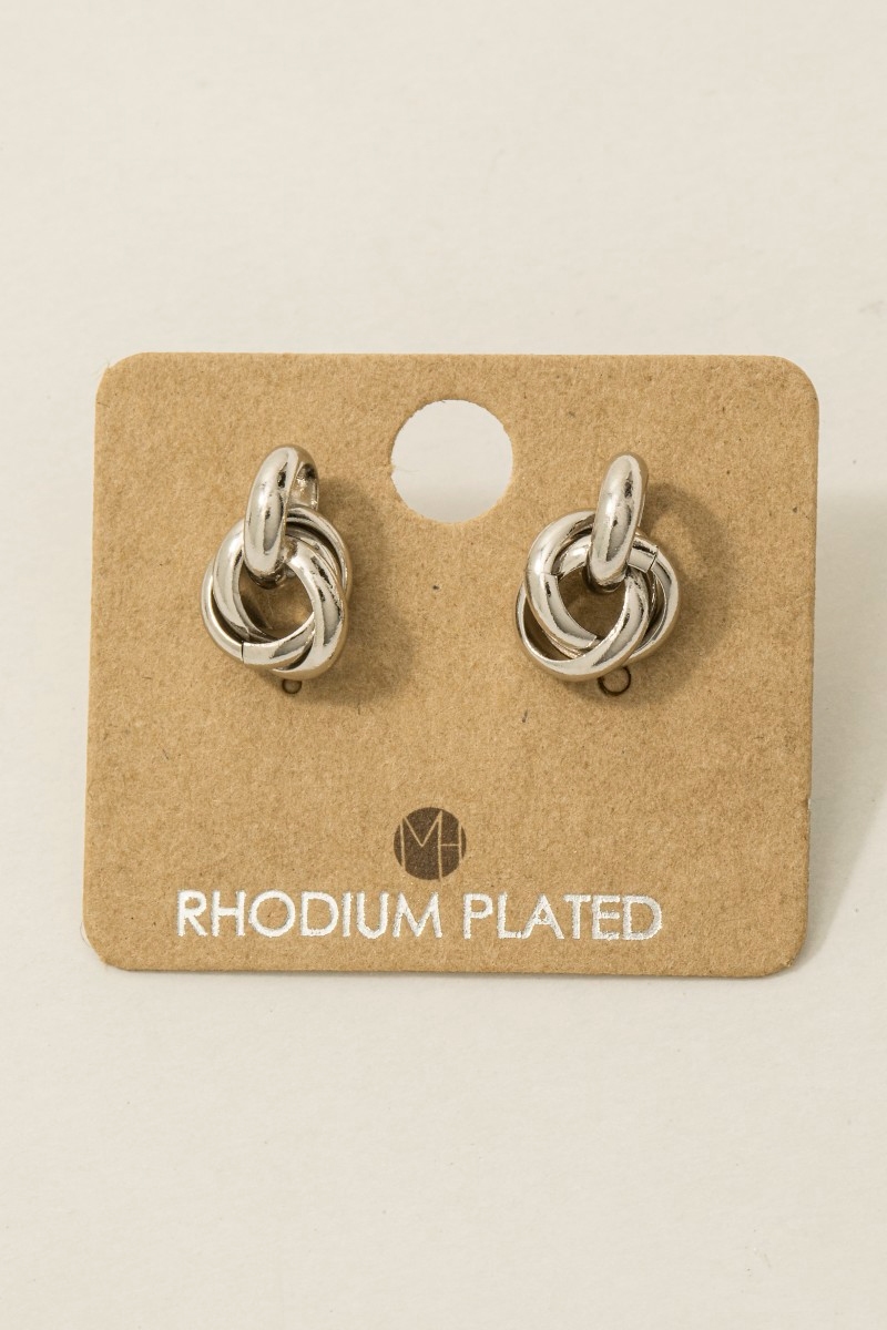 - This trending pair of earrings features a fashionable metallic knot stud earrings style. Immerse yourself in the world of understated glamour as this trending pair of earrings effortlessly exudes timeless appeal.