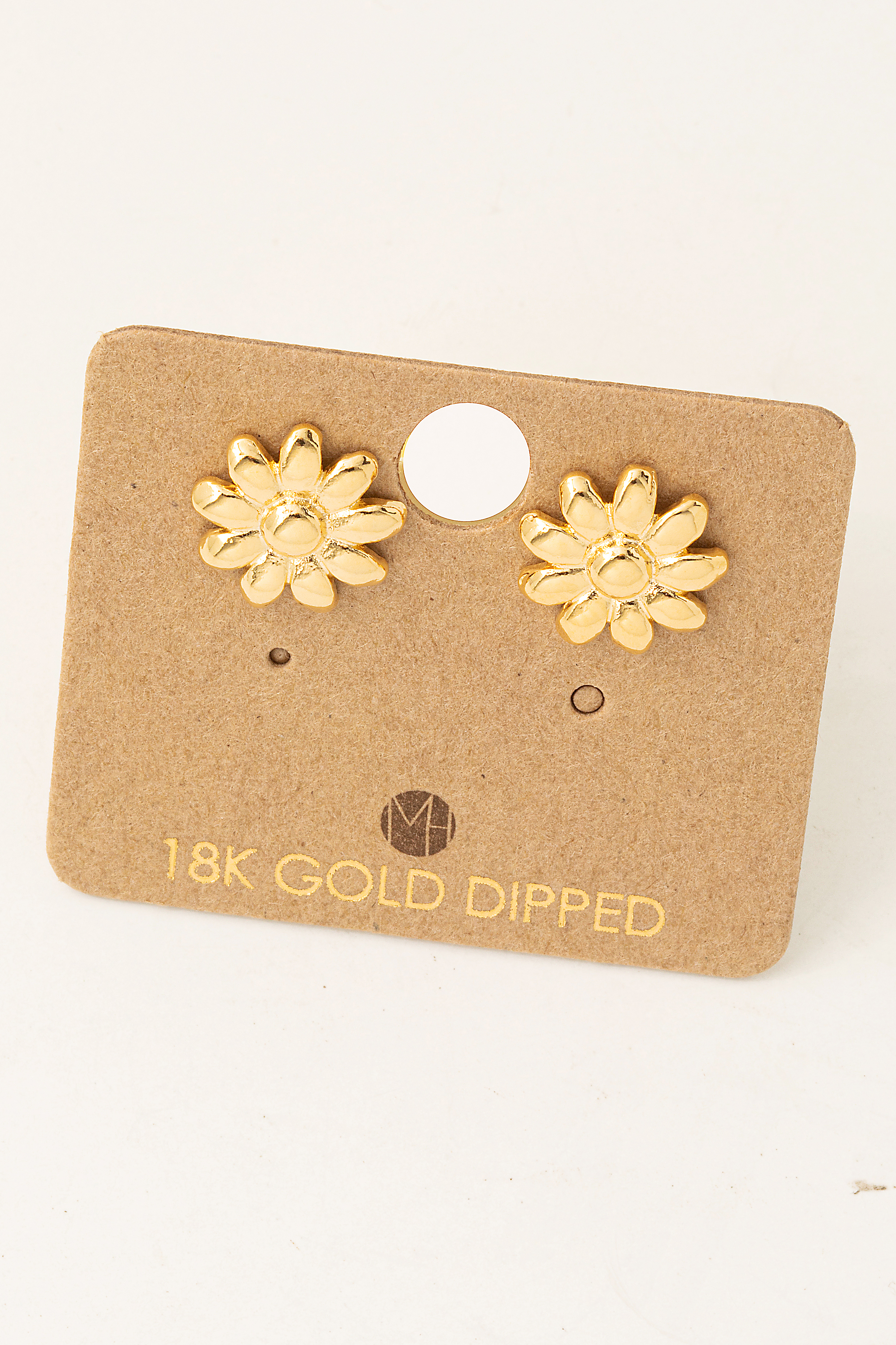 Gold Dipped Mini Cz Flower Hinge Hoop Earrings