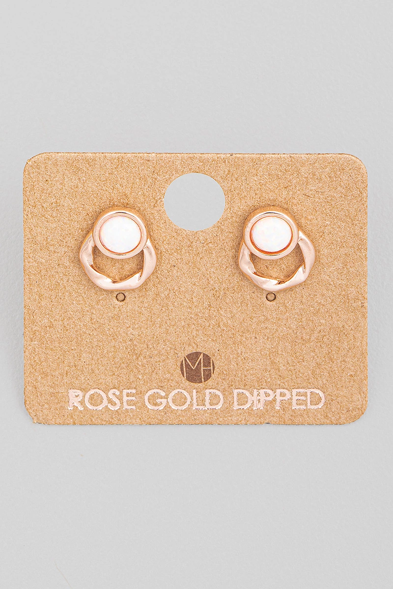 Gold Dipped Vintage Heart Opal Stud Earrings