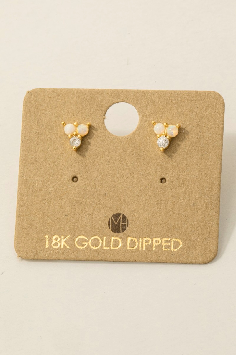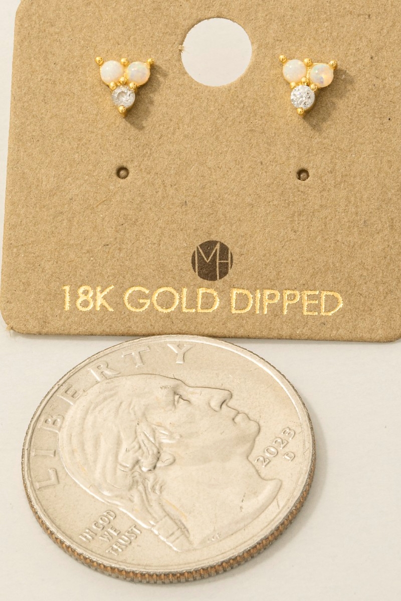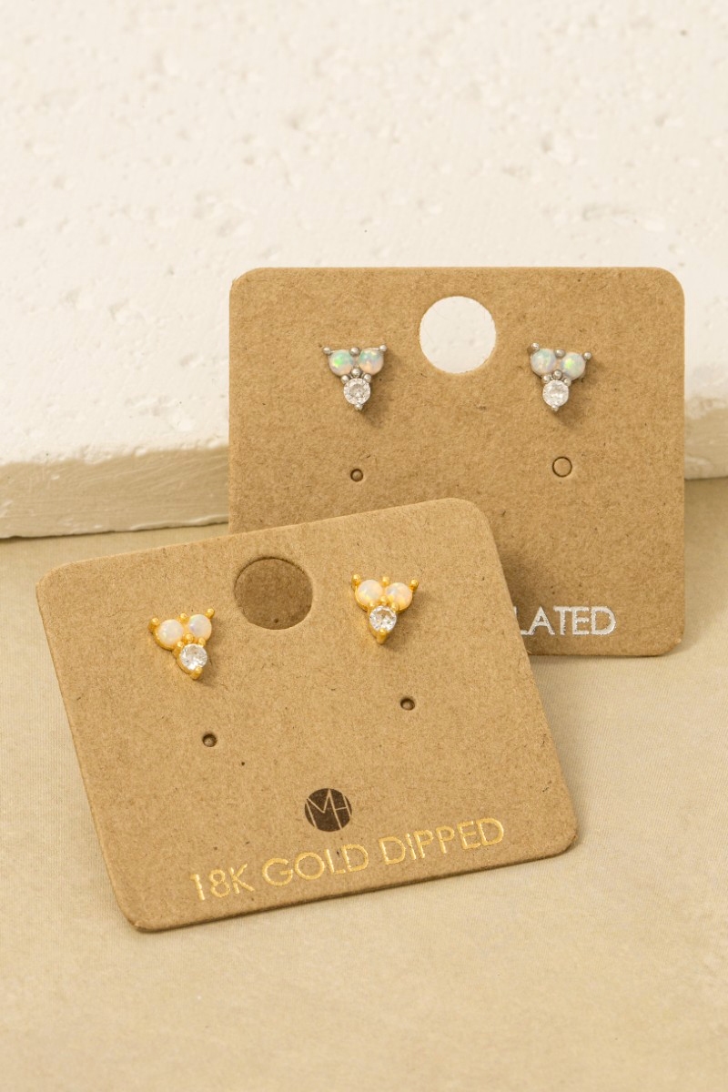 - This trending pair of earrings brings a luxurious mini triple opal stud earrings style. Revel in the intricate design that effortlessly distinguishes this trending pair of earrings, making it a statement piece.