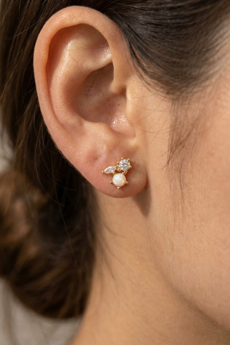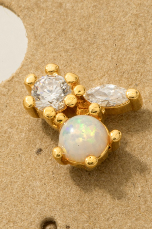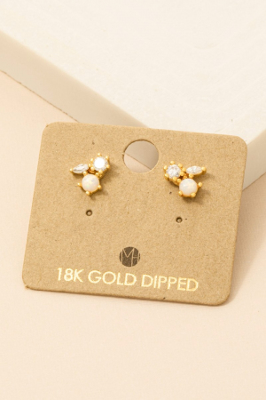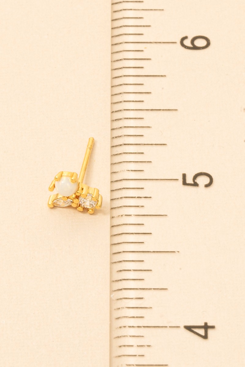 • This trending pair of earrings displays a vibrant mini triple rhinestone stud earring style. Elevate your ensemble with this trending pair of earrings that effortlessly captures the essence of refined fashion.
