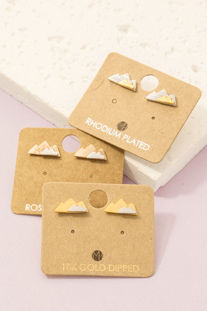 • This trending pair of earrings showcases a unique two toned mountain stud earrings style. Celebrate the art of accessorizing with this piece that effortlessly encapsulates modern trends.