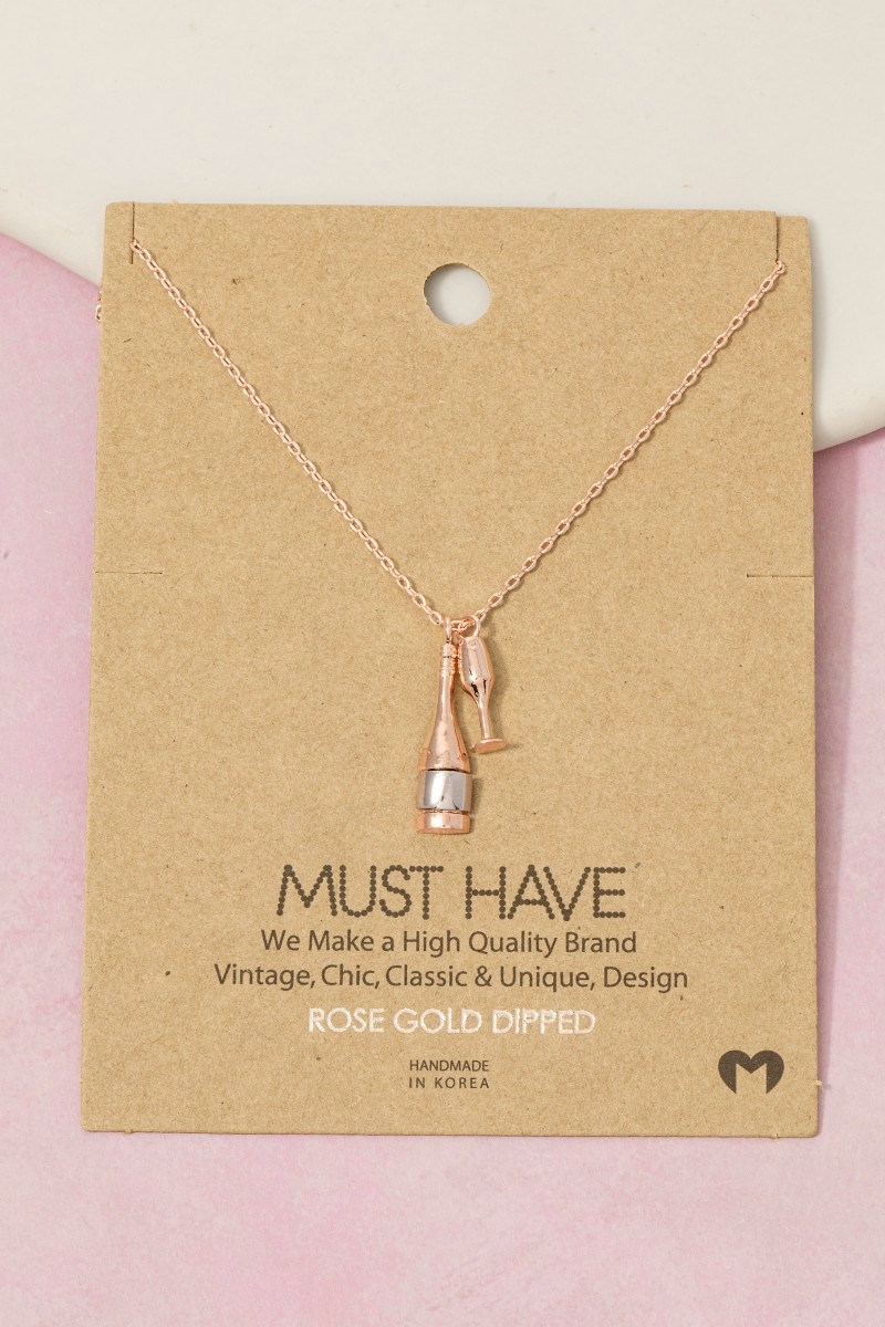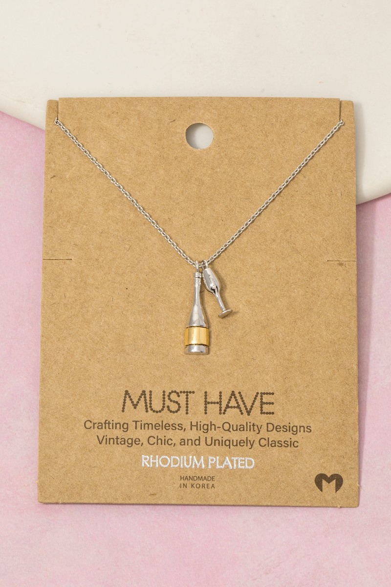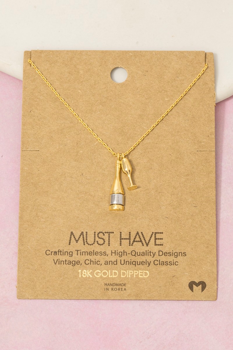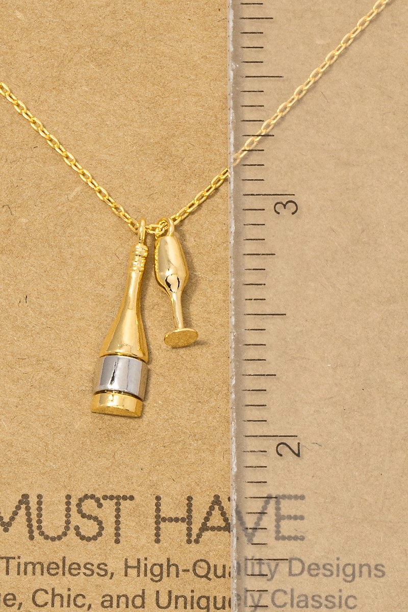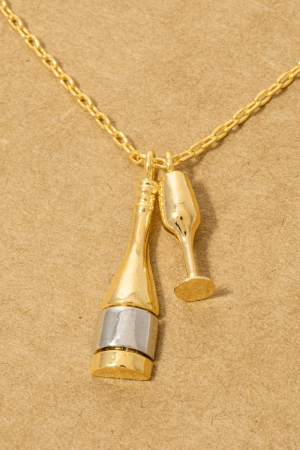 - This necklace brings a stunning gold dipped champagne bottle and glass charms style. Unveil modern elegance with this subtly intricate necklace.