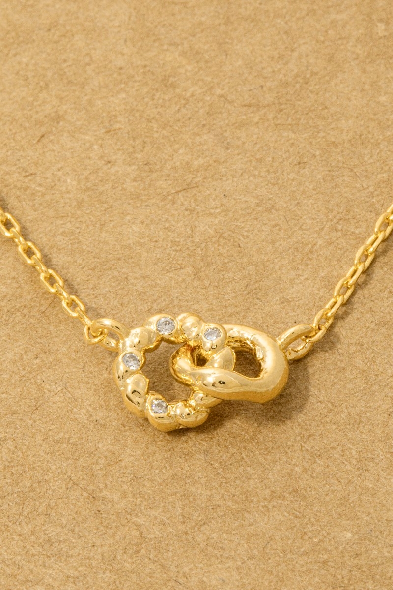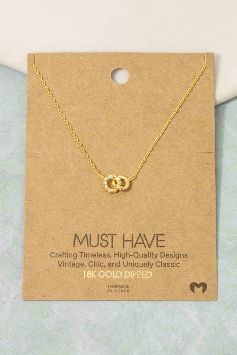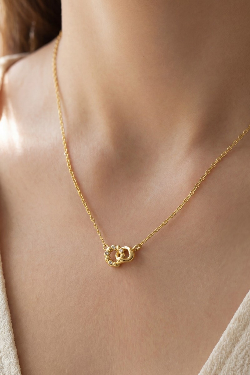 • This pendant necklace brings a stunning gold dipped cubic zirconia studded hoop link style. Elevate your ensemble with this pendant necklace that effortlessly captures the essence of refined fashion.