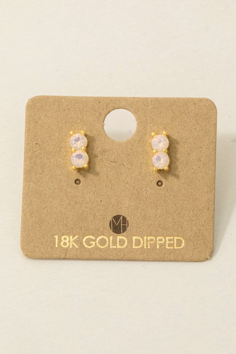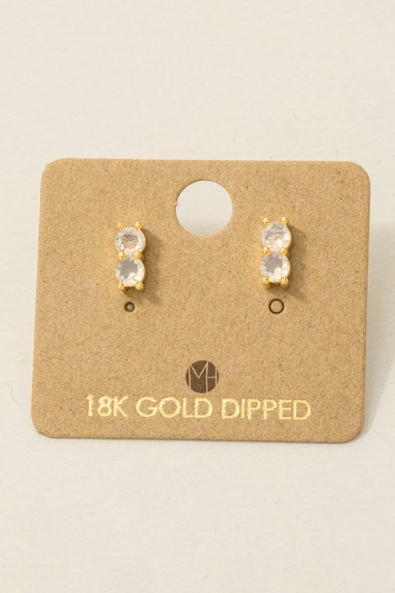 • This trending pair of earrings displays a vibrant gold dipped double cubic zirconia link stud earrings style. Immerse yourself in the world of understated glamour as this trending pair of earrings effortlessly exudes timeless appeal.