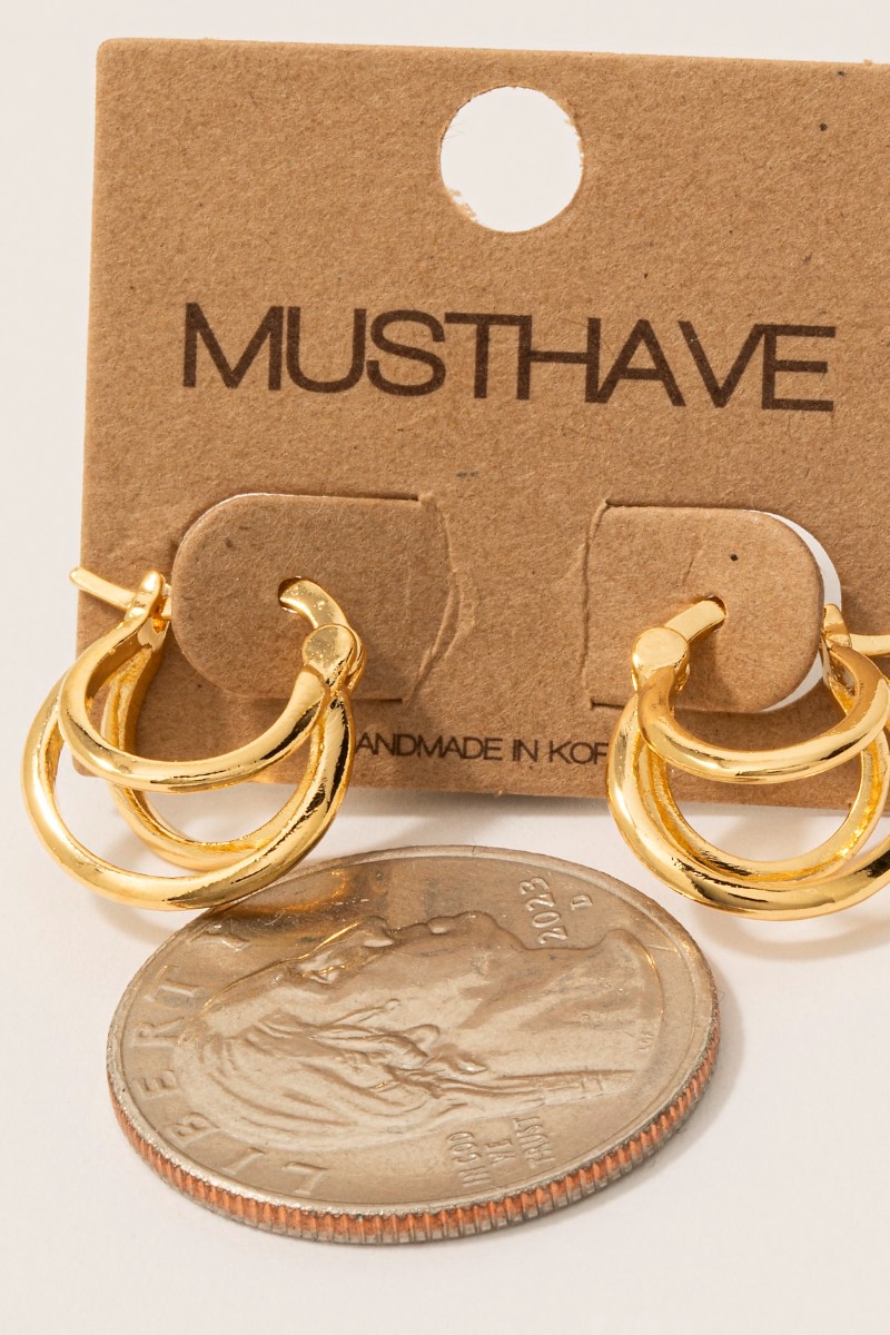 • This pair of hoop earrings introduces a unique gold dipped double layered latch style. Discover the perfect balance of functionality and fashion.