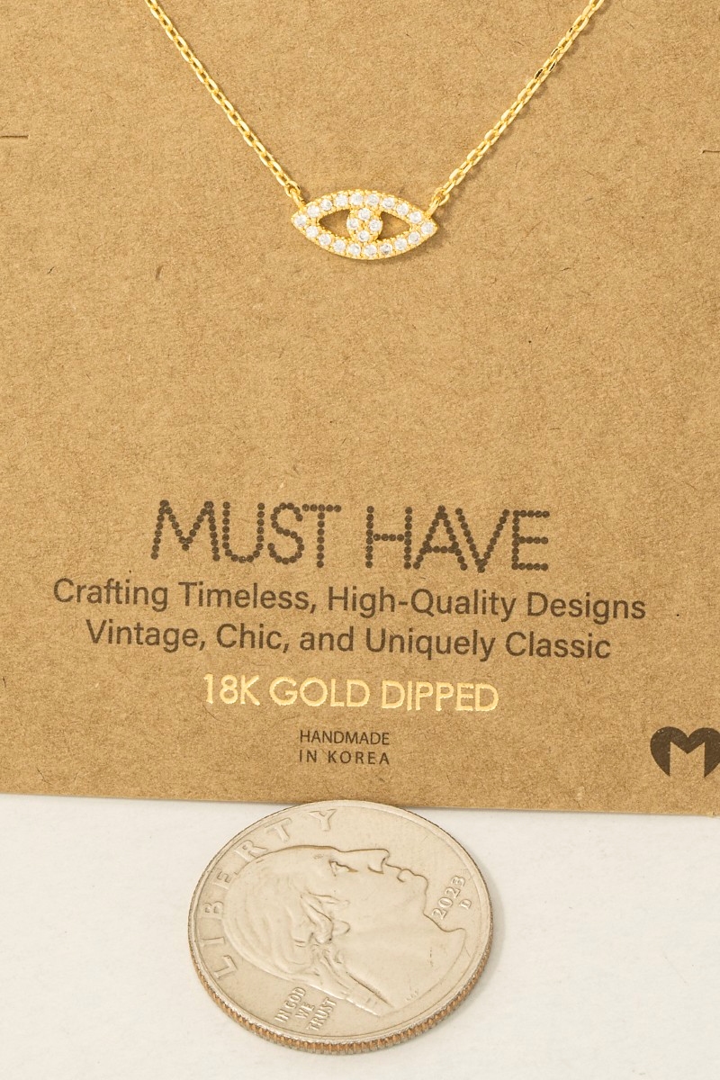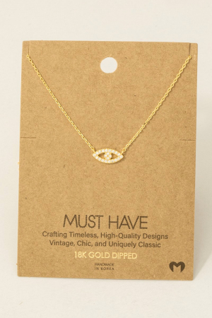 - This trending necklace brings a luxurious gold dipped evil eye jewel pendant necklace style. Experience the joy of accessorizing with this piece that effortlessly combines versatility and charm.