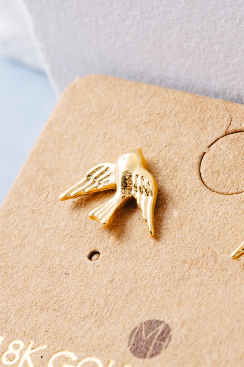 • This trending pair of earrings displays a fashionable gold dipped flying bird stud earrings style. Explore a refined sense of style with this trending pair of earrings, seamlessly elevating the chic factor of your look.
