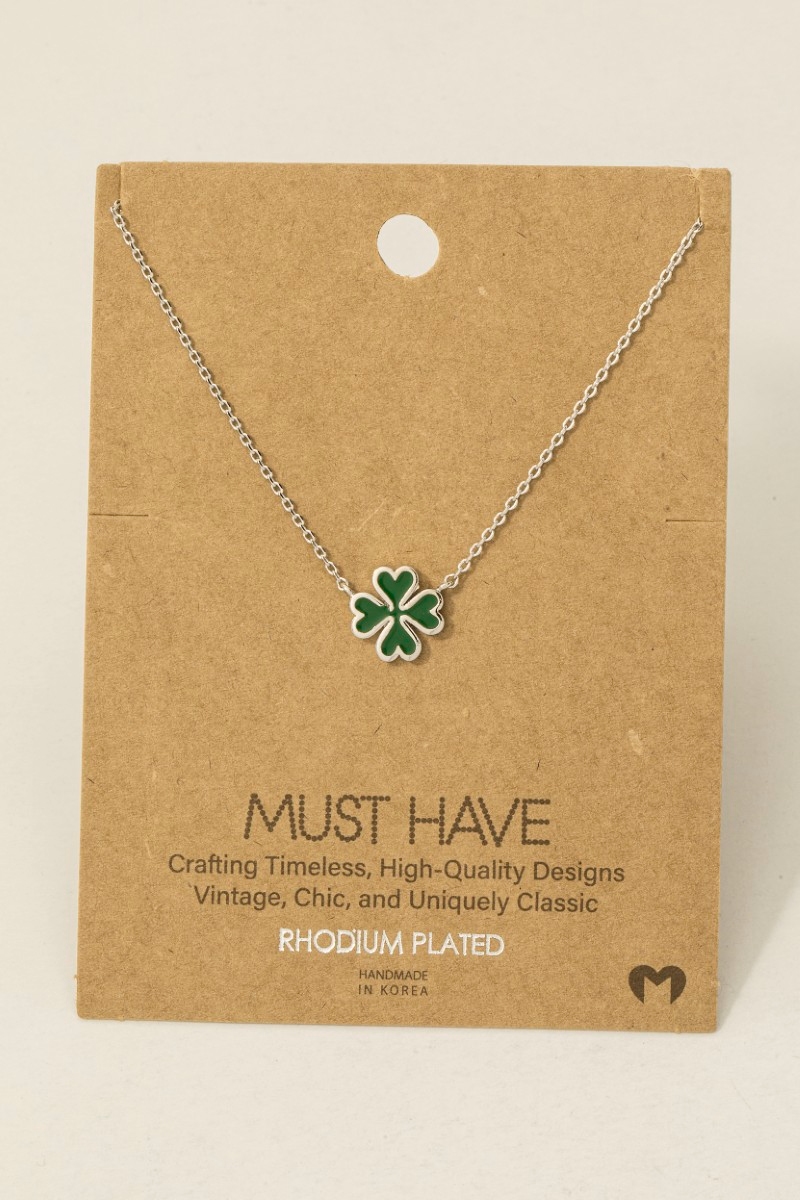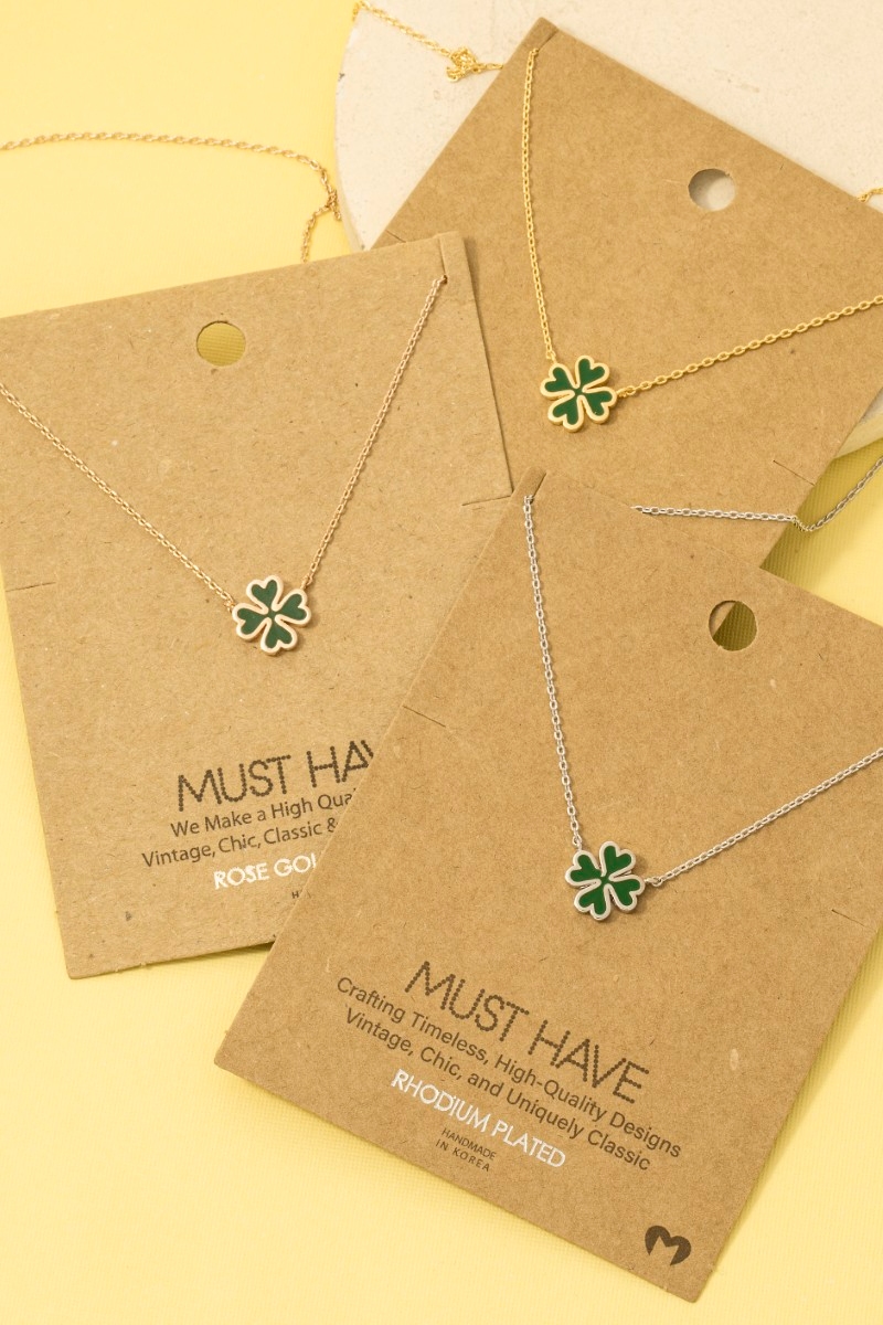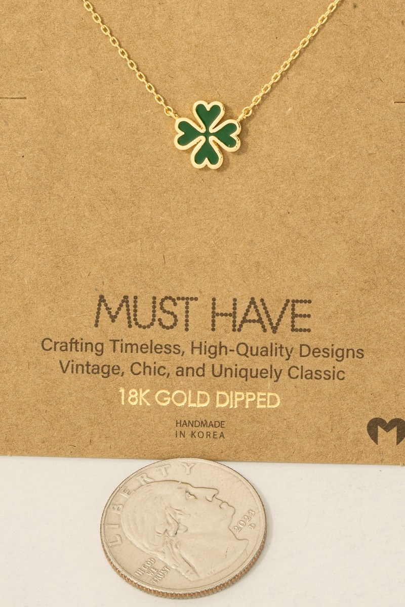 - This necklace showcases a unique gold dipped green clover charm style. Delight in the nuanced details that make this necklace a testament to fine design and impeccable taste.
