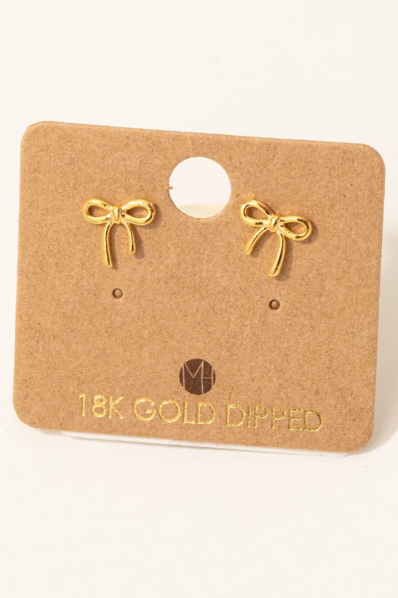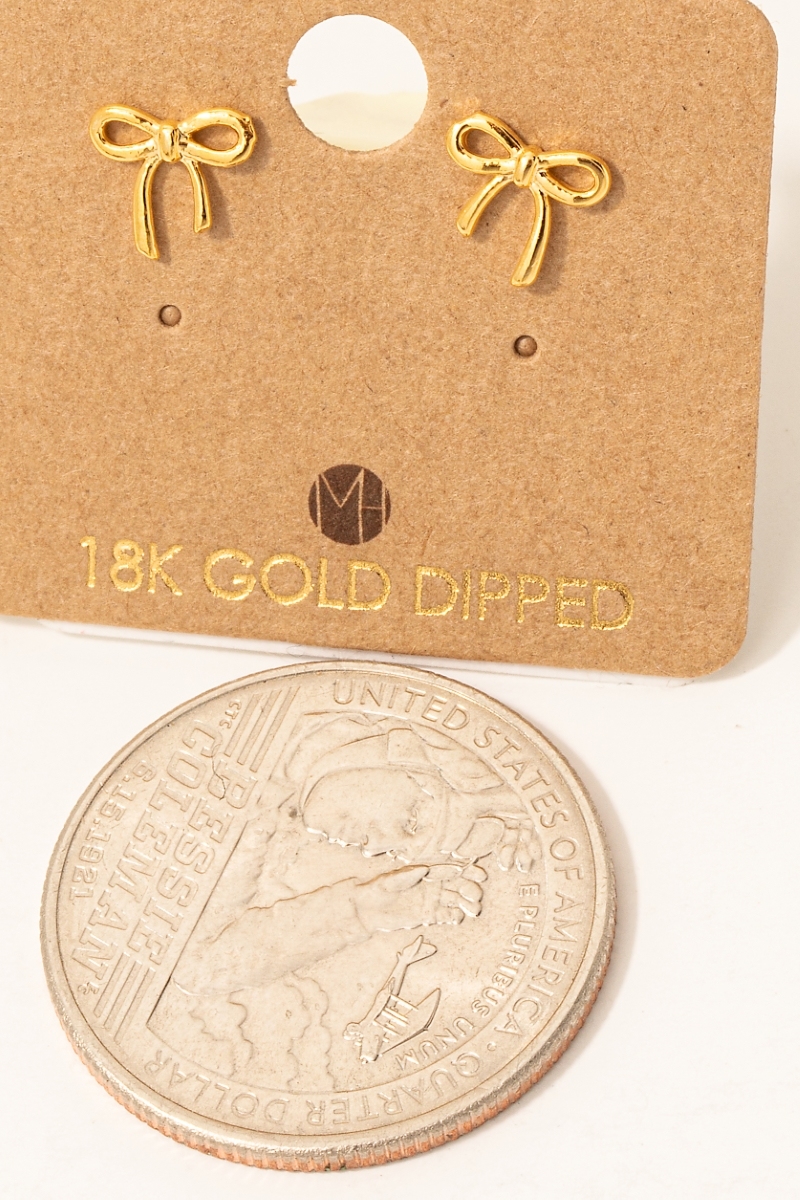 - This pair of stud earrings features a fashionable gold dipped mini ribbon bow style. Delight in the intricate details that make this pair of stud earrings an essential element in expressing your fashion identity.