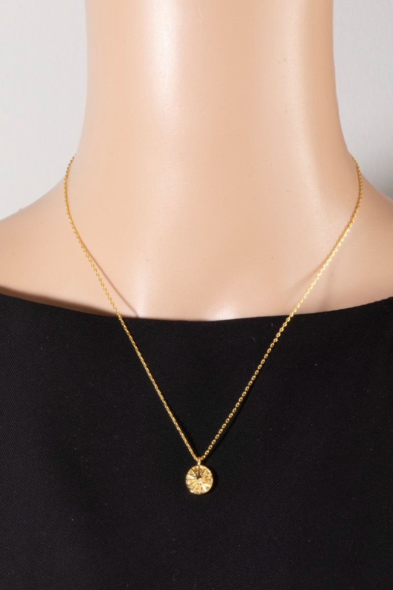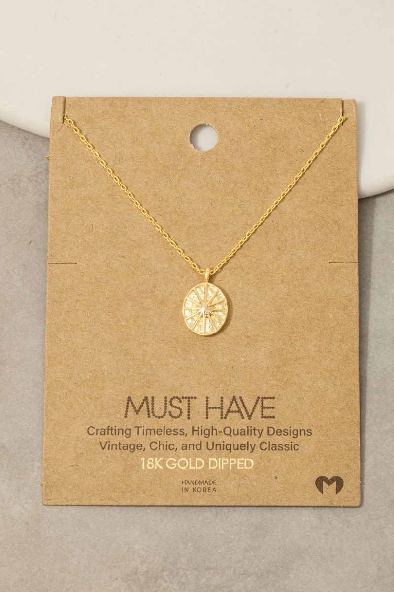 - This pendant necklace adds a modern gold dipped oval coin style. Step into a world of refined taste as this pendant necklace effortlessly refines the details of your outfit.