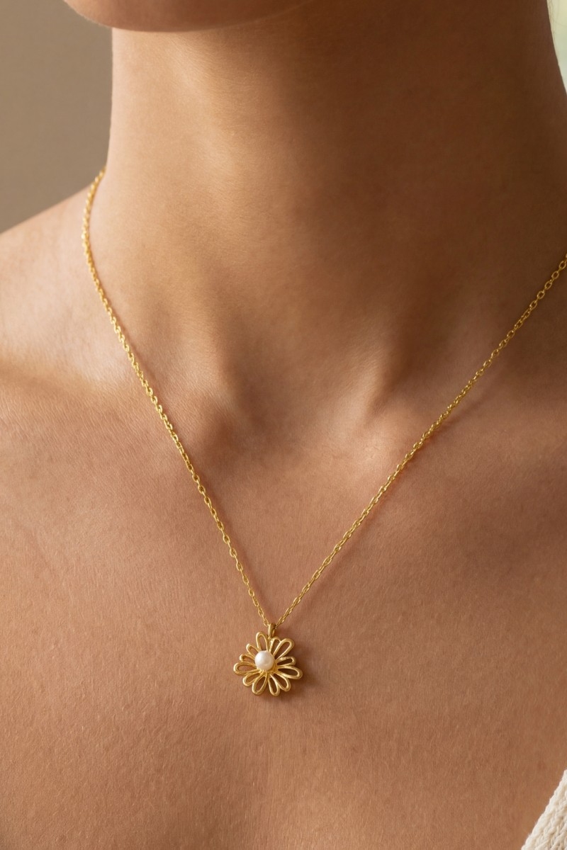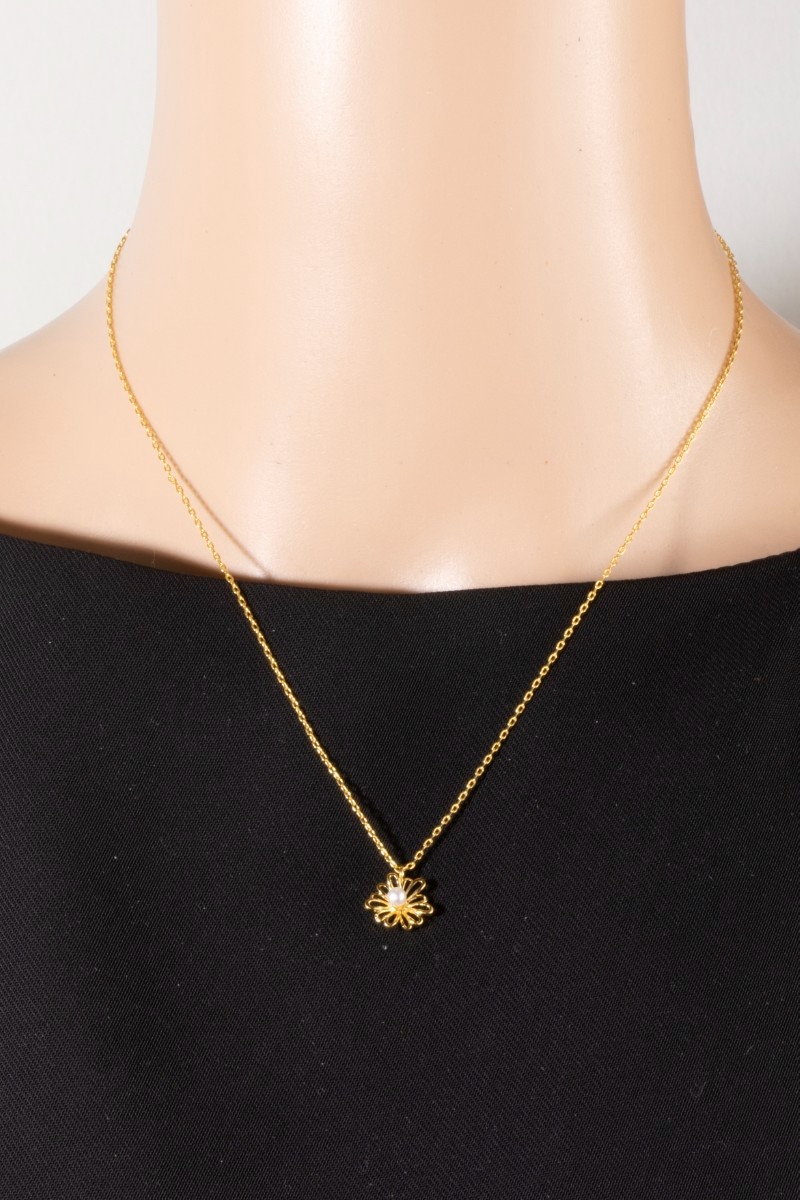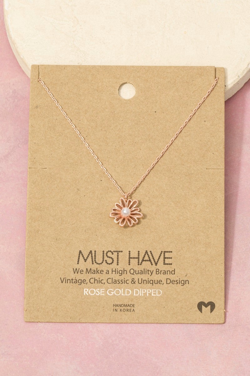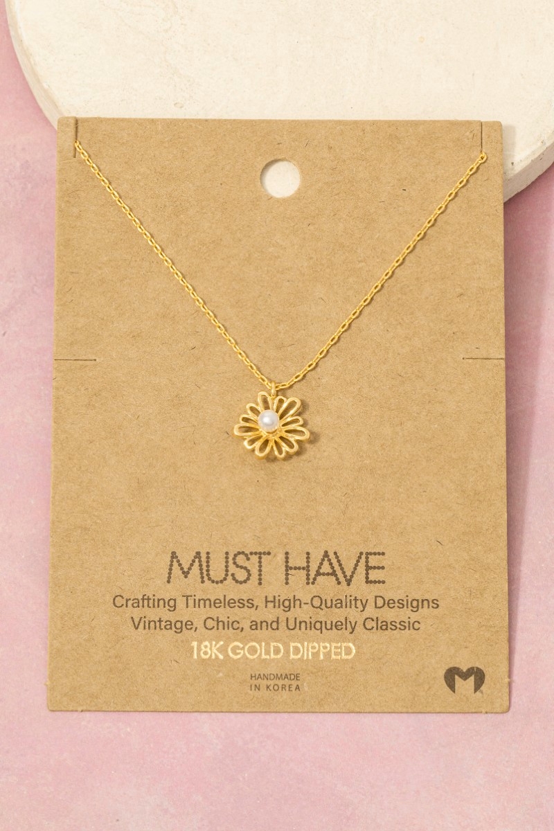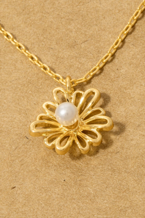- This pendant necklace showcases a timeless gold dipped pearl stud flower style. Redefine your look effortlessly with this standout, on-trend piece.
