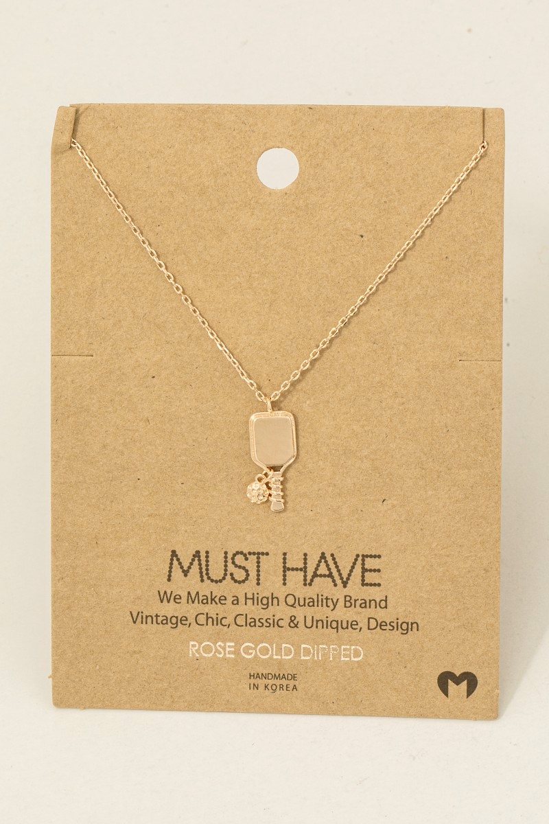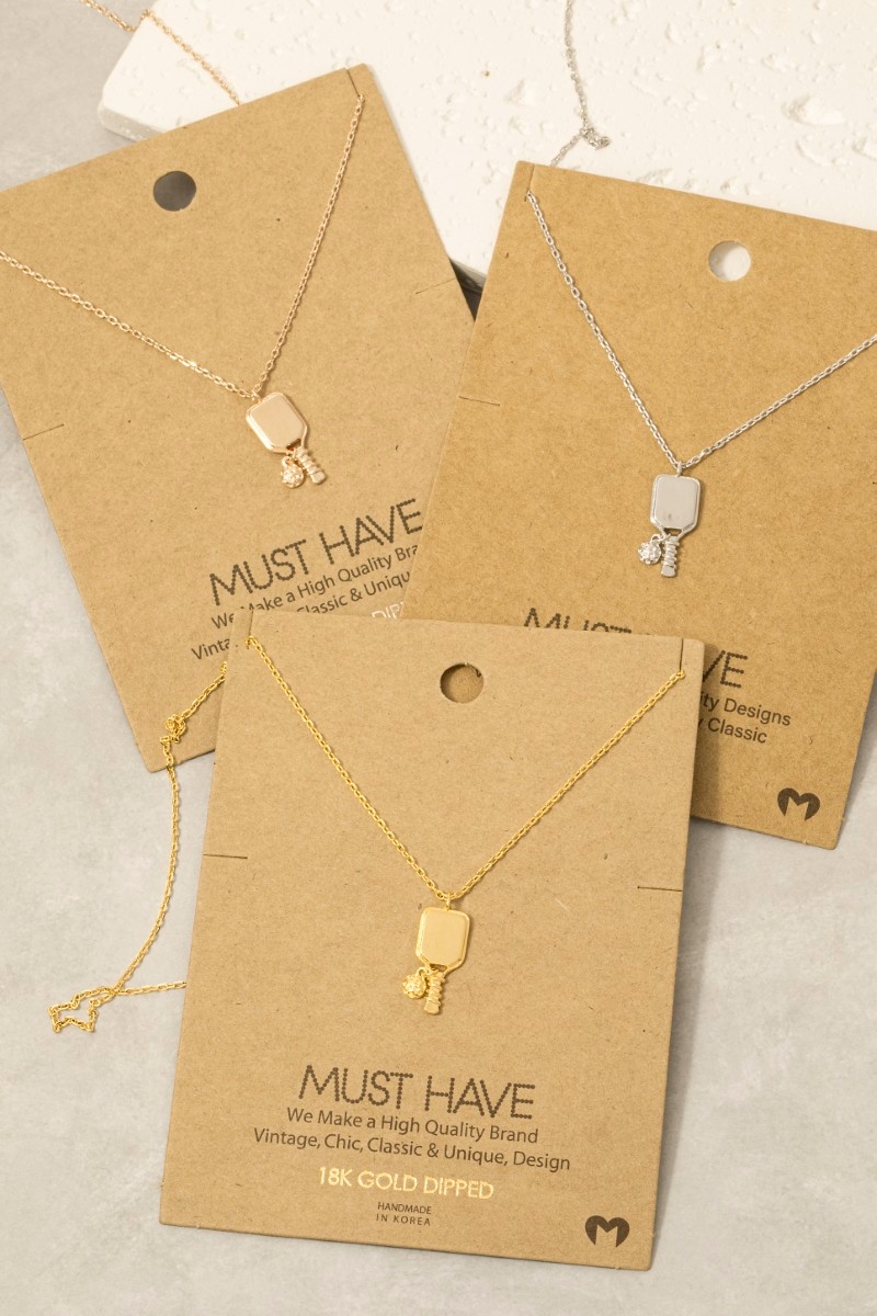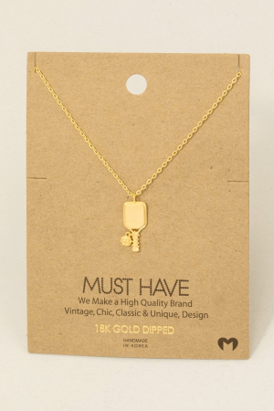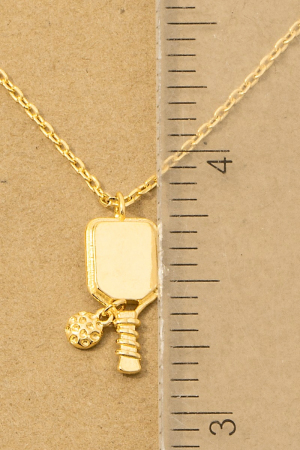 • This necklace showcases a unique gold dipped pickle ball pendant style. Savor the allure of detailed craftsmanship in this exquisite necklace.