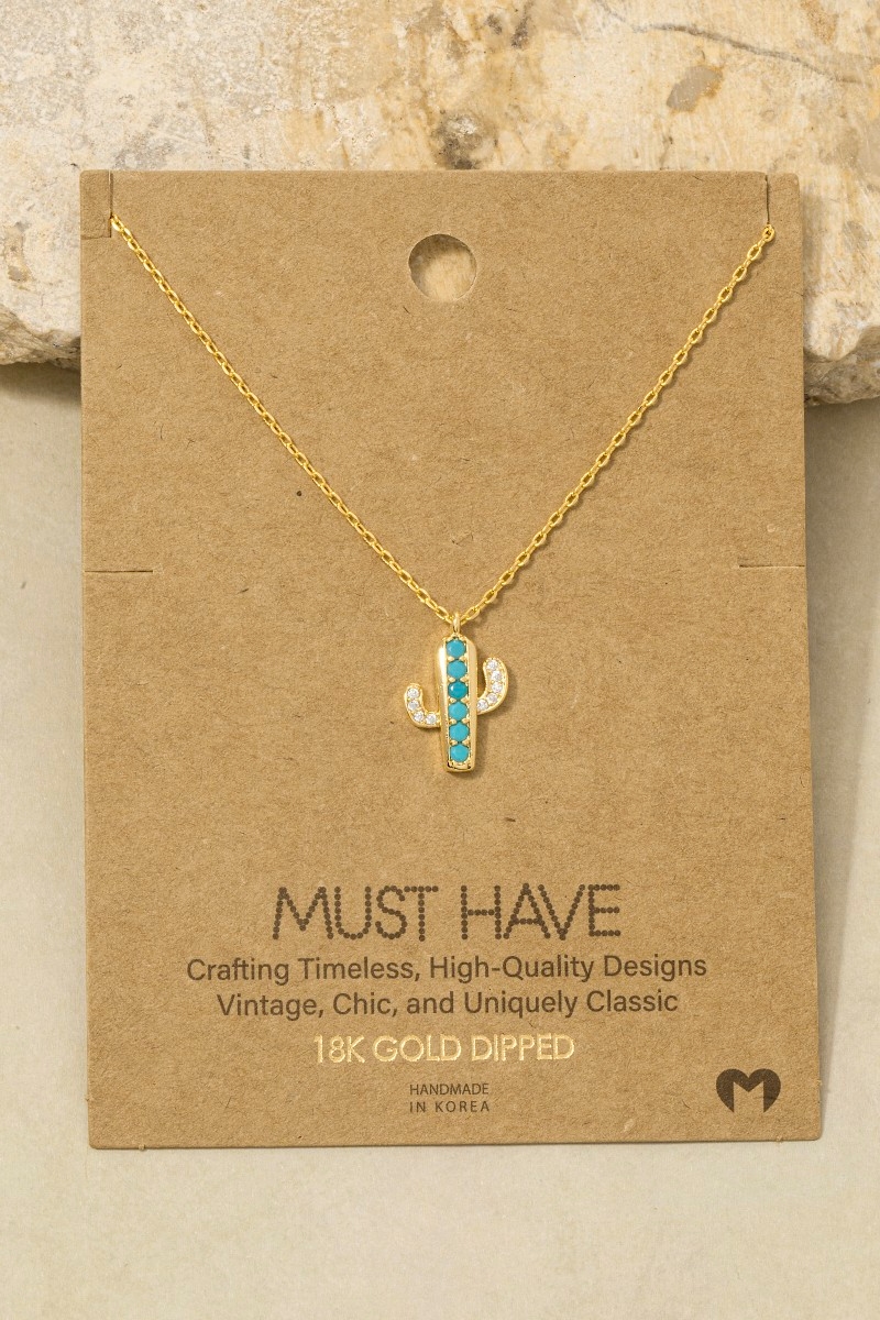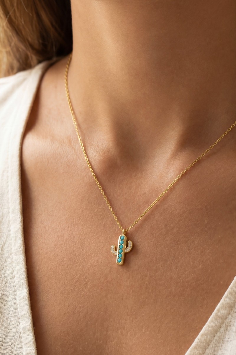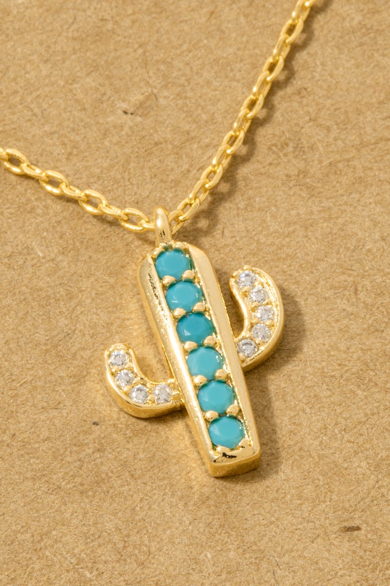 - This pendant necklace brings a luxurious gold dipped turquoise and cubic zirconia cactus style. Discover the perfect balance of subtlety and flair as this pendant necklace effortlessly completes your look.