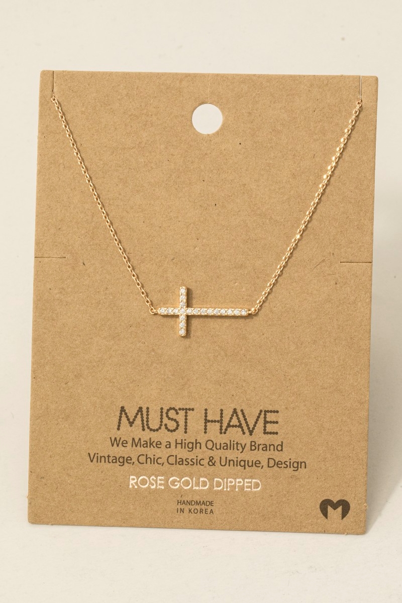 Gold Dipped Cz Cross Pendant Necklace