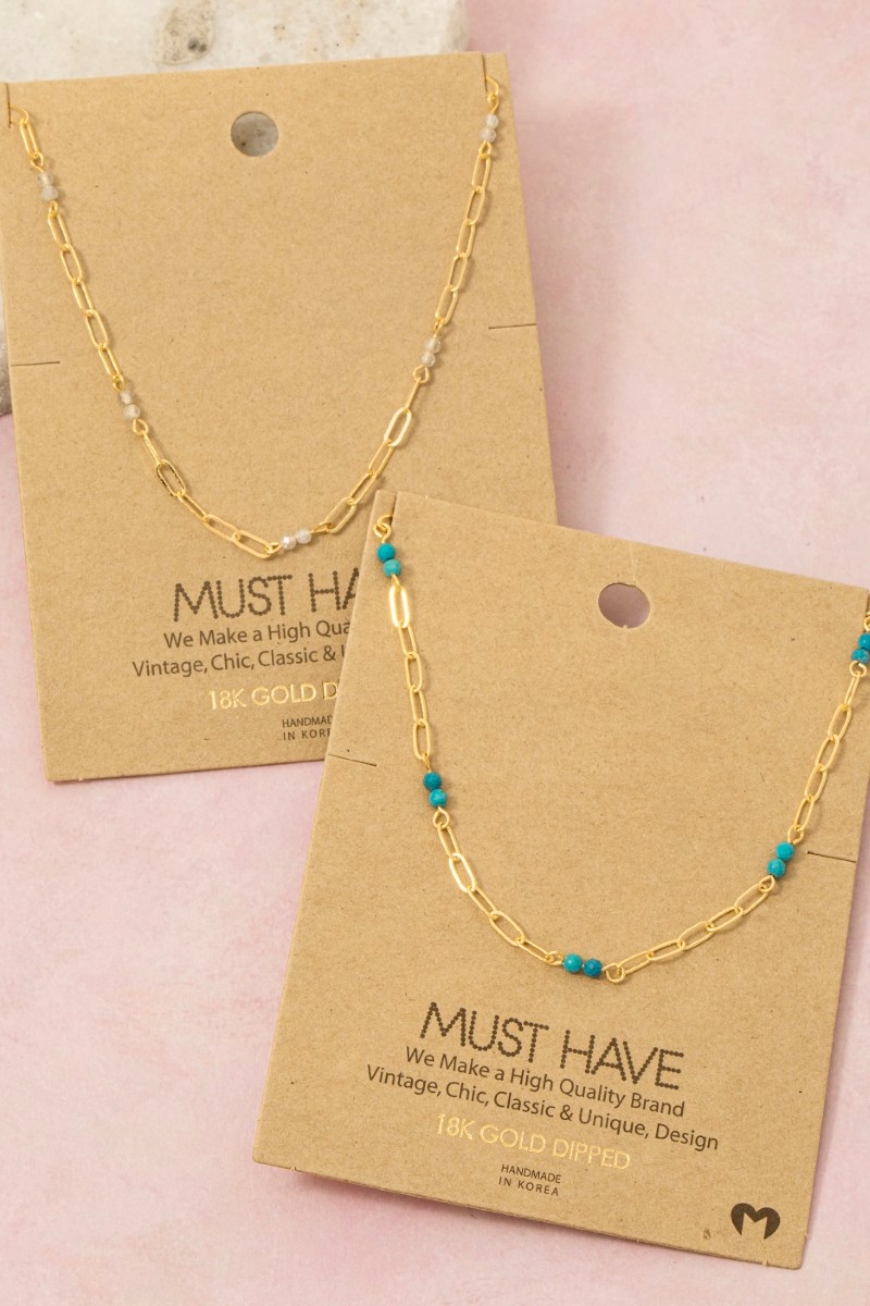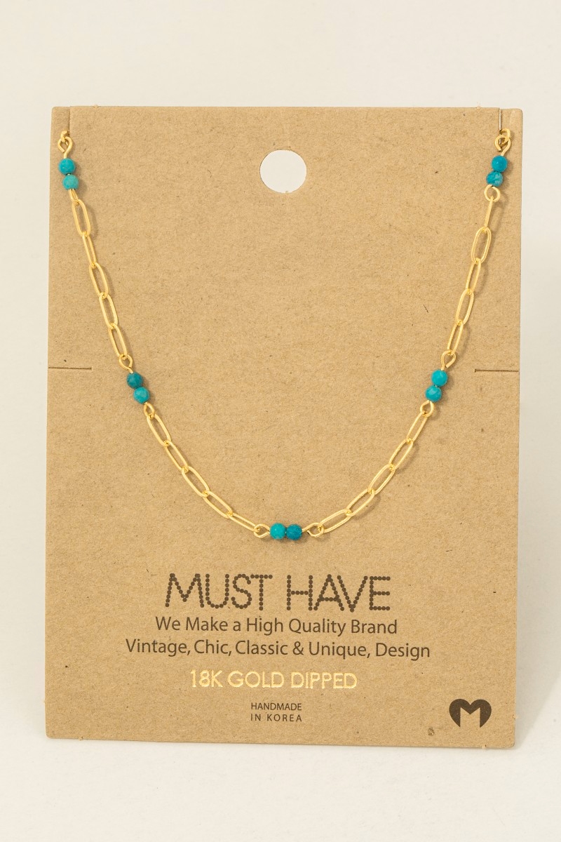 - This trending necklace brings a unique dainty chain link bead station necklace style. Indulge in the allure of exquisite craftsmanship as this trending necklace effortlessly adds a touch of luxury to your attire.