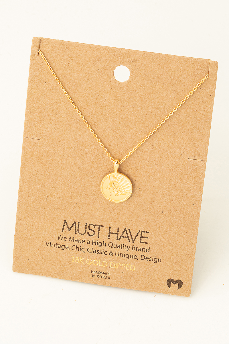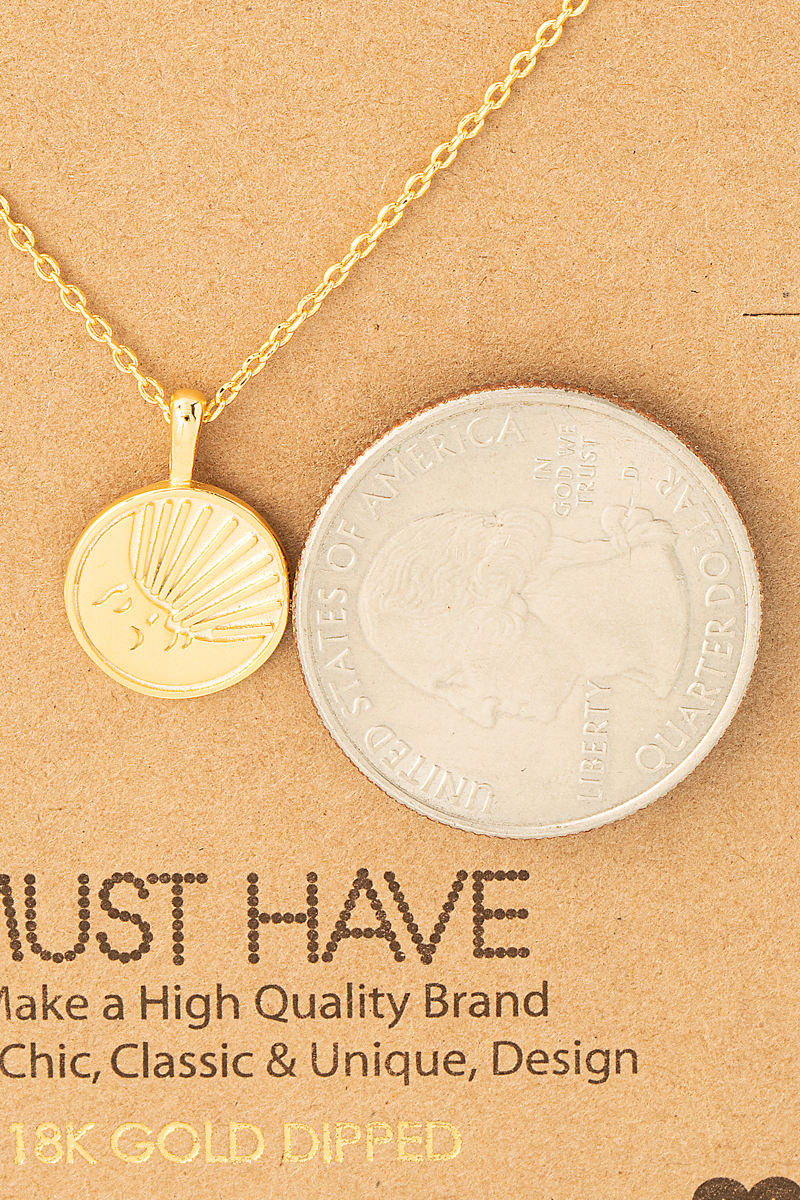 Gold Dipped Pearl Stud Ripple Coin Pendant Necklace