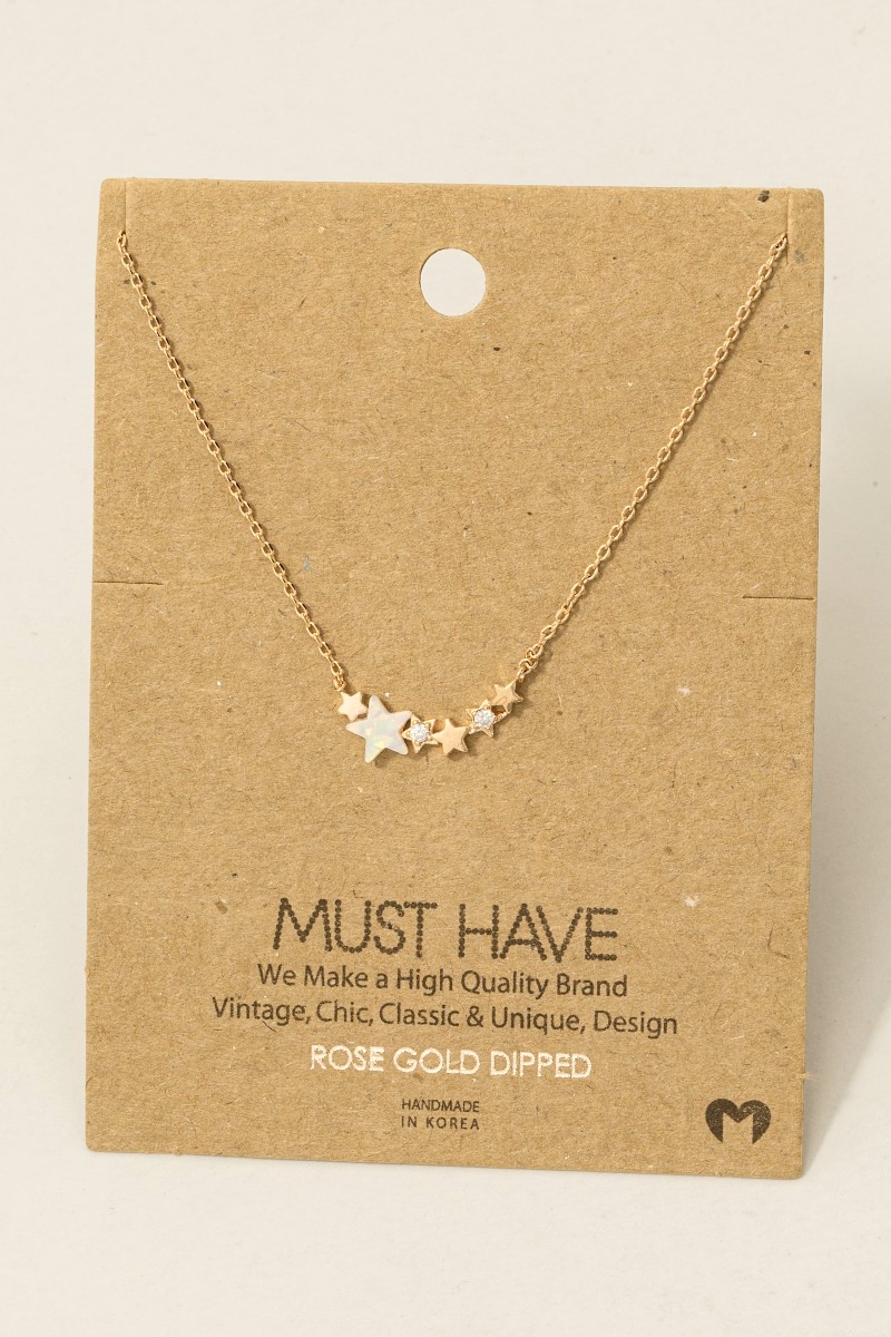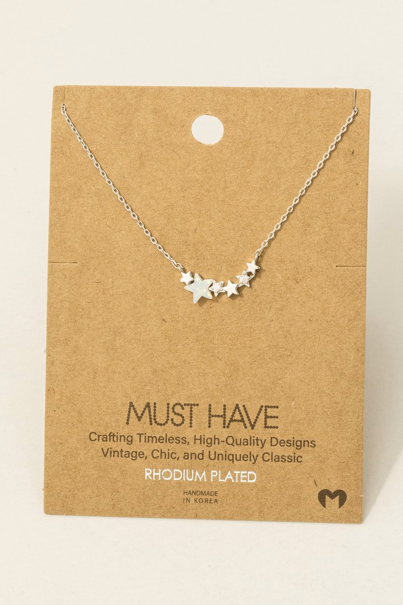 - This trending necklace features a fashionable dainty multi star charm necklace style. Unveil modern elegance with this subtly intricate trending necklace.