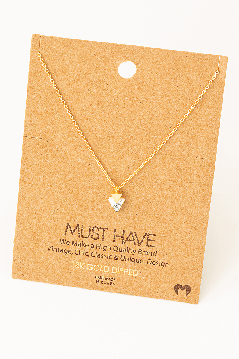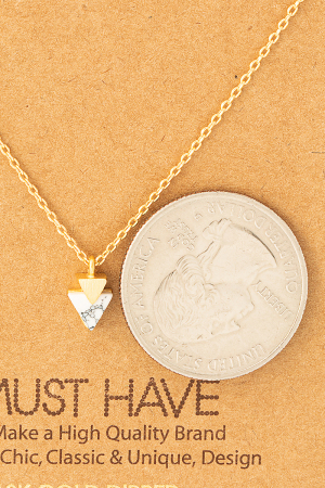 • This trending necklace displays a fashionable dainty triangle stone pendant necklace style. Celebrate the art of accessorizing with this piece that effortlessly encapsulates modern trends.