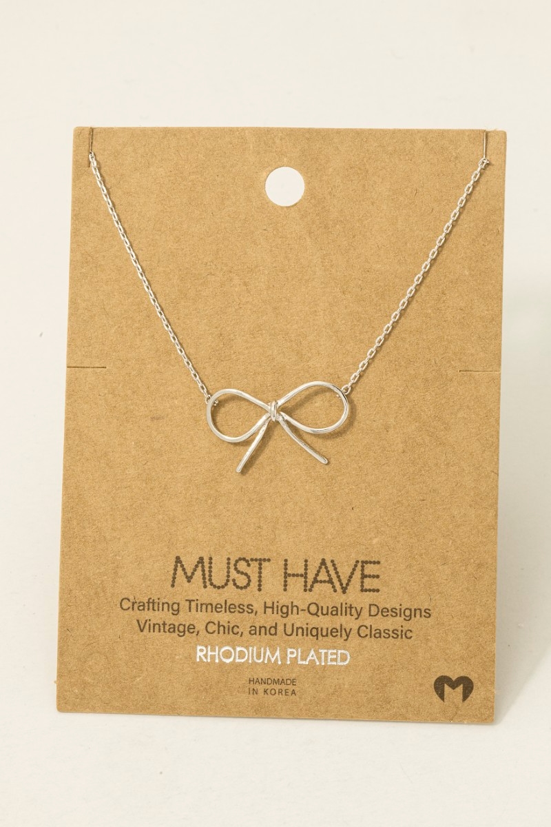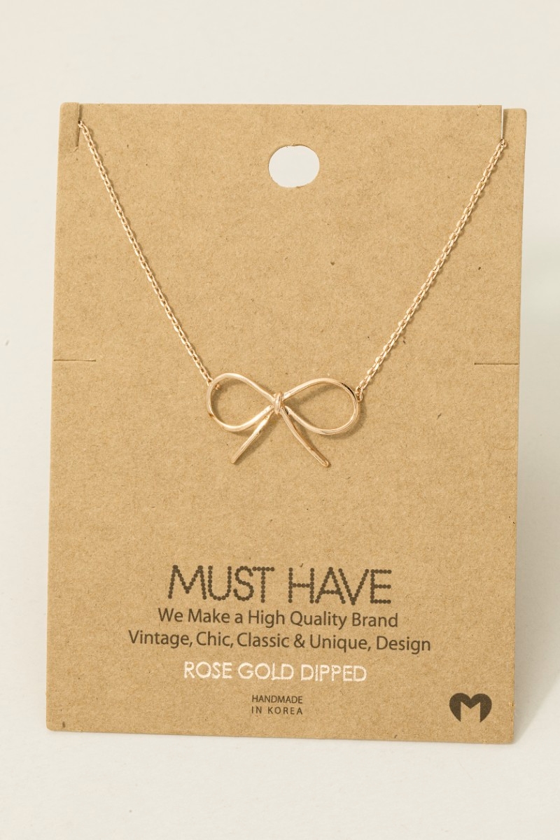 • This trending necklace showcases a unique gold dipped bow tie pendant necklace style. Savor the allure of detailed craftsmanship in this exquisite trending necklace.