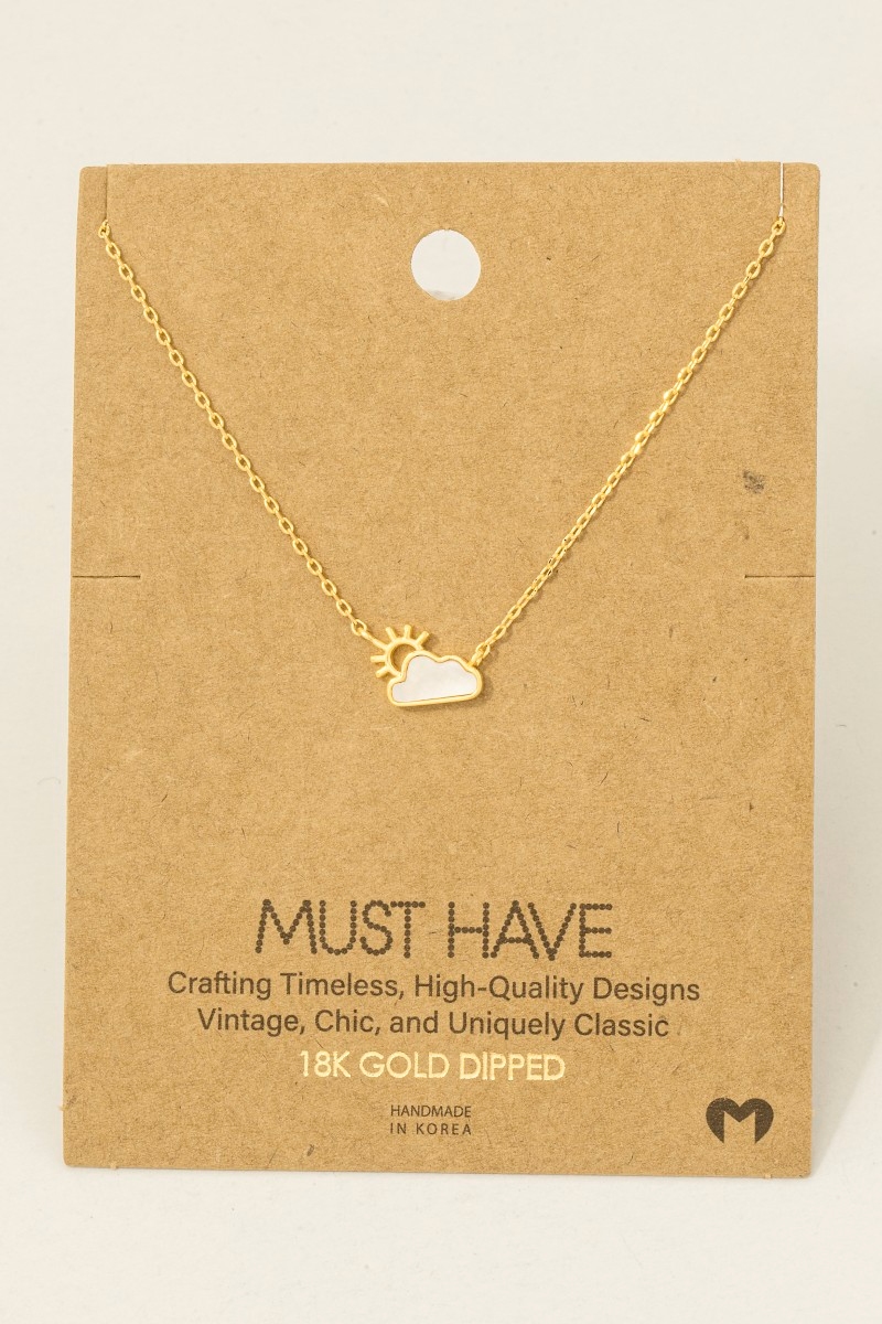 - This trending necklace brings a luxurious gold dipped cloud sun pendant necklace style. Celebrate individual style with this versatile, eye-catching addition.