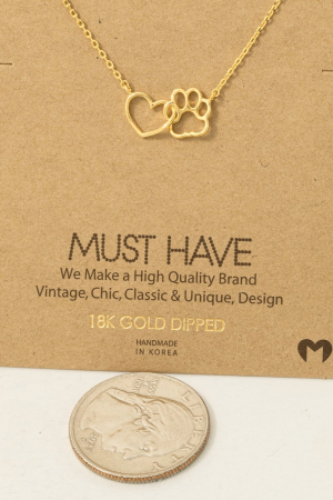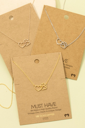 - This pendant necklace displays a vibrant gold dipped dog paw heart cutout style. Savor the craftsmanship that goes beyond the ordinary, as this pendant necklace effortlessly captivates attention.