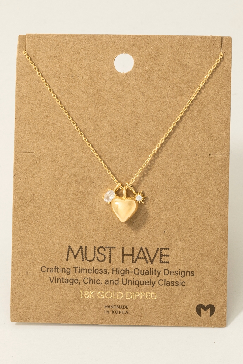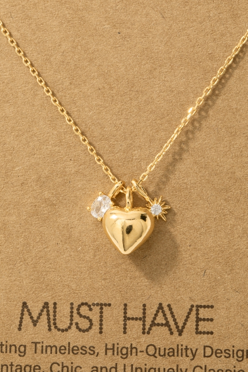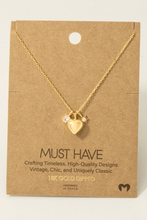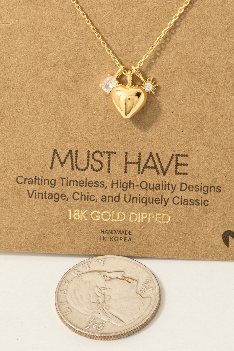 - This trending necklace introduces a stunning gold dipped heart and cubic zirconia charms chain necklace style. Witness the perfect fusion of style and functionality as this trending necklace effortlessly complements your lifestyle.